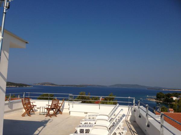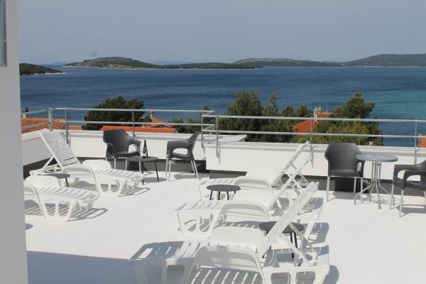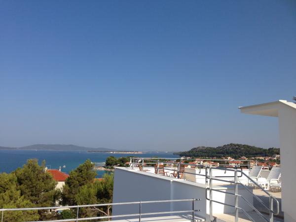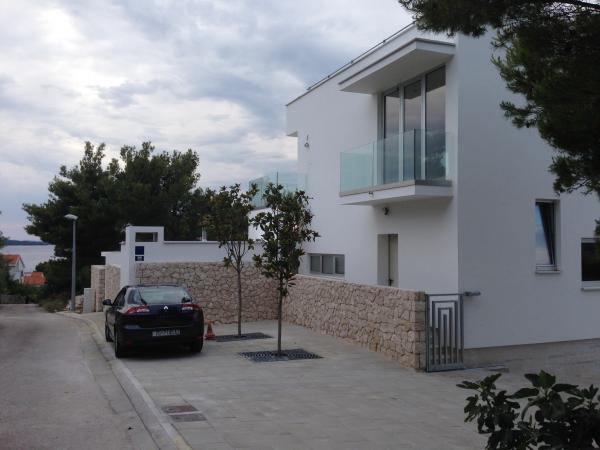 Ő villa található egy csendes részén Zaboric, 160 m-re a tengertől. Jelenleg 8 lakosztály, kap max. 29 fő. Rámutat a modern építészet és a terasz a lapos tető a ház lenyűgöző kilátás nyílik a tengerre és a szigetekre. A terasz zuhanyzó, bútorok napozáshoz és a társasági élet. Az apartmanok berendezett, modern és funkcionális bútorok. Apartman A2 3 A2 2 és mosogatógép. Ingyenes Wi-Fi áll rendelkezésre minden apartmanban. A parkolás ingyenes.