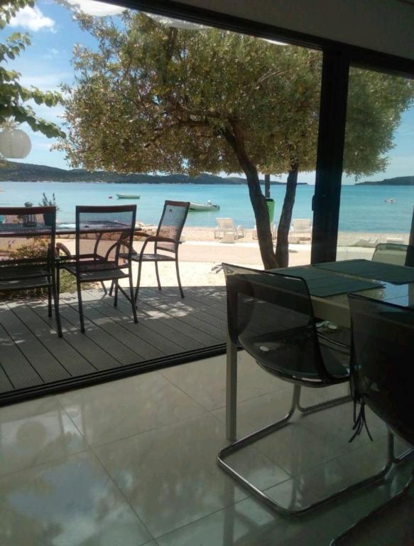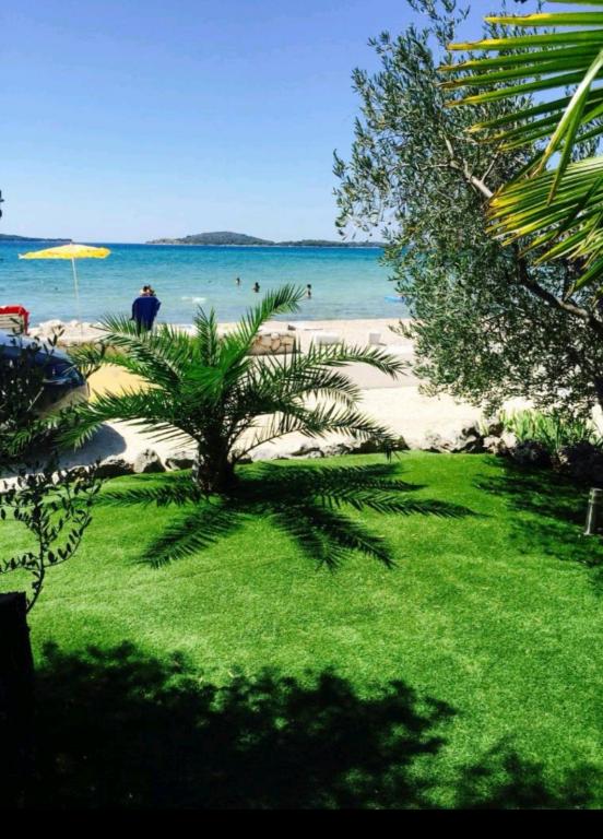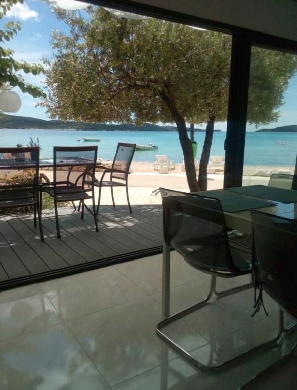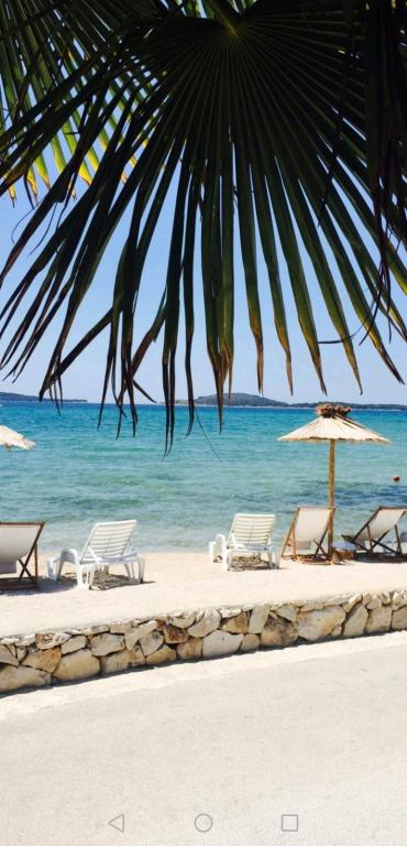 Teljesen és modern módon felszerelt apartmanok egy csendes helyen, Zaboric városában, Šibenik közelében, az első sorban a tenger felé. A strand közvetlenül az épület előtt található, 5 méterre a lakástól. Minden apartman tengerre néző. Minden apartman háztartási készülékekkel van felszerelve: mosogatógép, mosógép, mikrohullámú sütő, főzőlap, sütő, vízforraló, hűtőszekrény fagyasztóval ,, SAT, WI-FI internet, hajszárító, kenyérpirító. Néhány apartmanban jéggép van. Minden apartman ingyenes parkolással, ingyenes grillezési lehetőséggel, valamint ingyenes strandszékekkel rendelkezik az udvaron. Háziállatok megengedettek. Lehetőség kikötőhelyek használatára 7 méteres csónaknál és pótkocsi parkolásához. Gyerekágy kérésre. A vendégek pihenhetnek egy függőágyon a kert árnyékában. A ház mellett csónak és jet-ski is kölcsönözhető. A közelben víz trambulin gyermekek számára, valamint szárazföldi trambulin található.