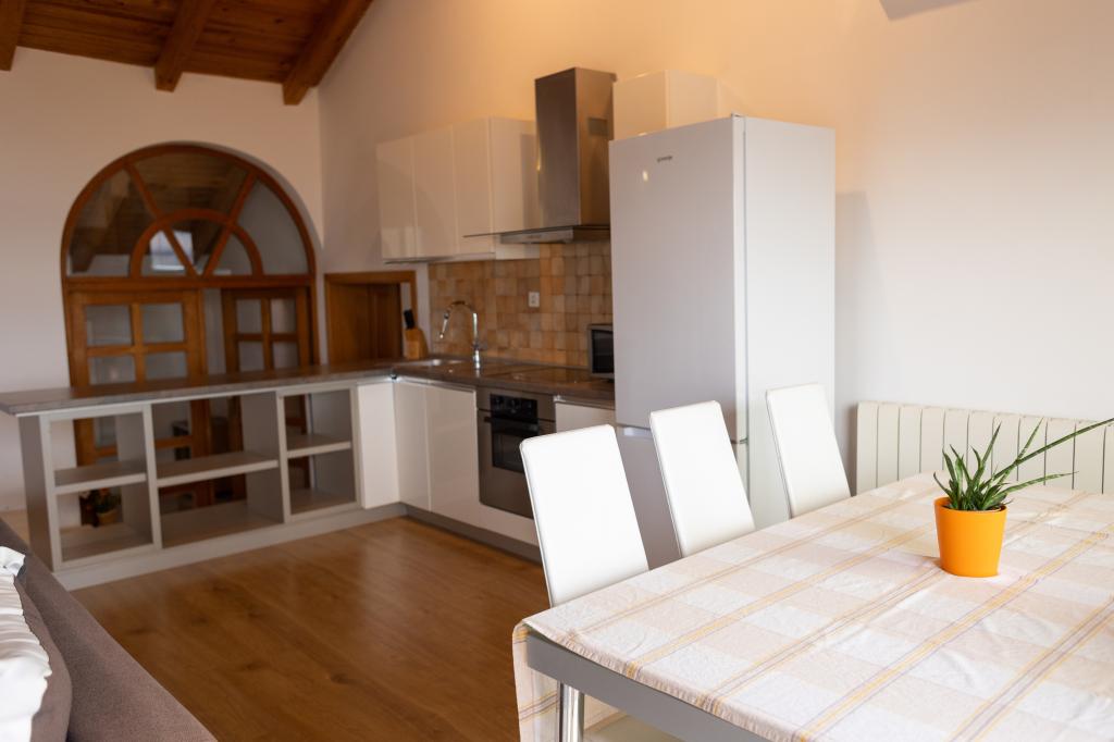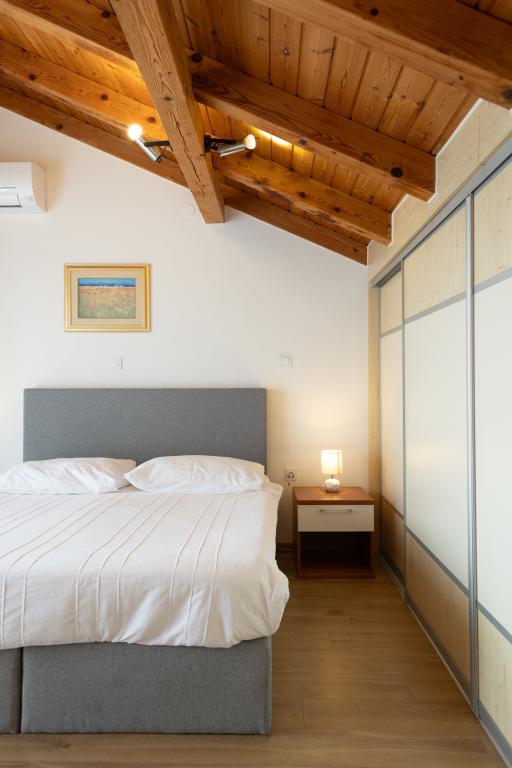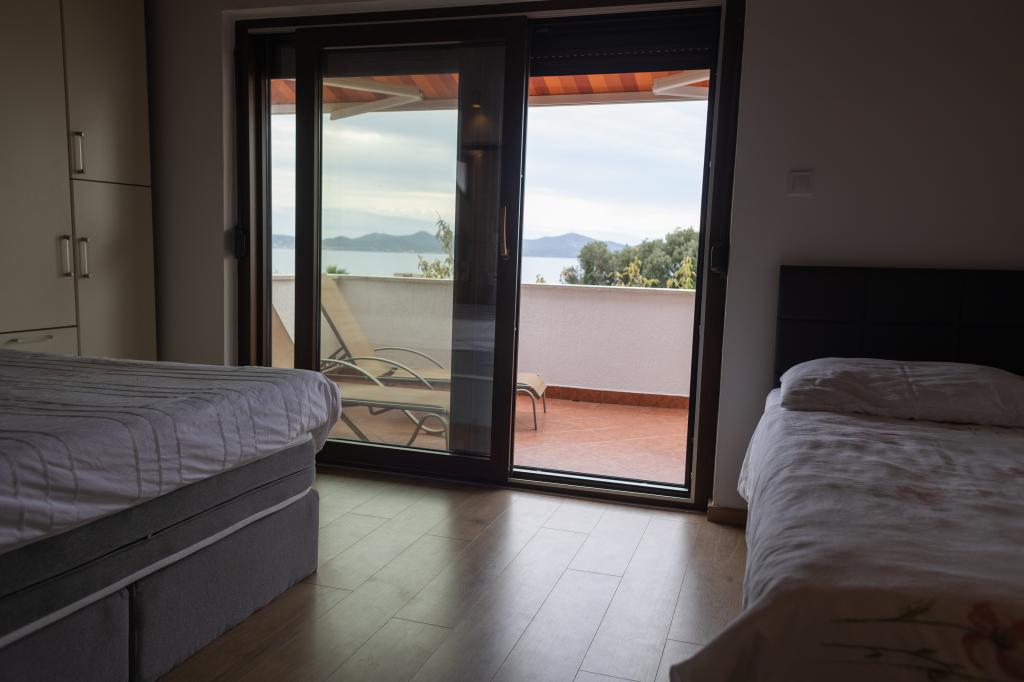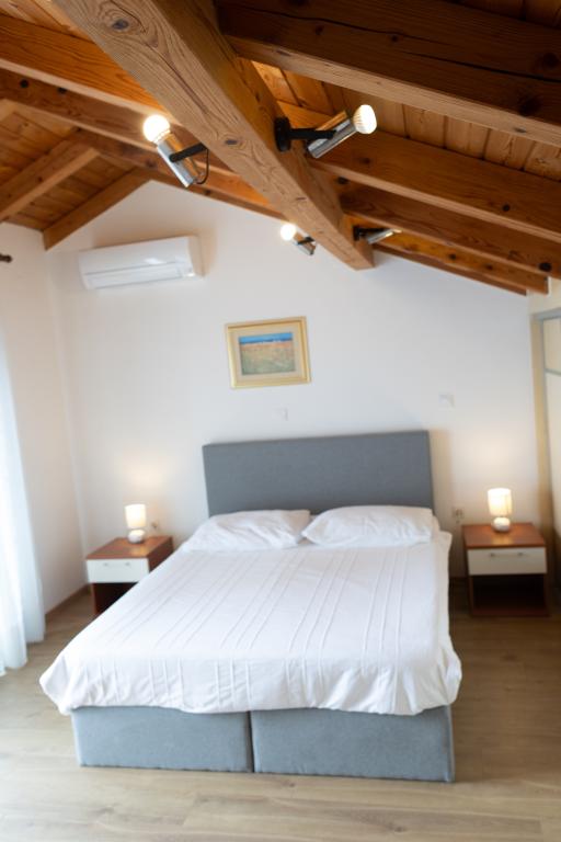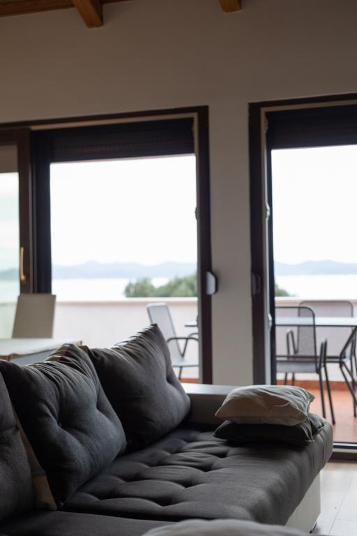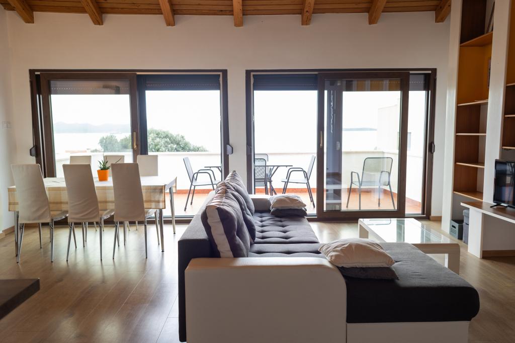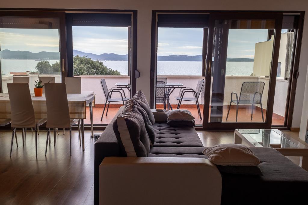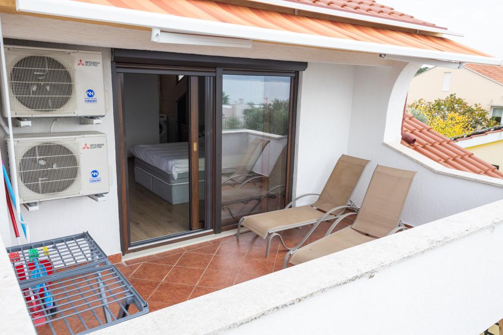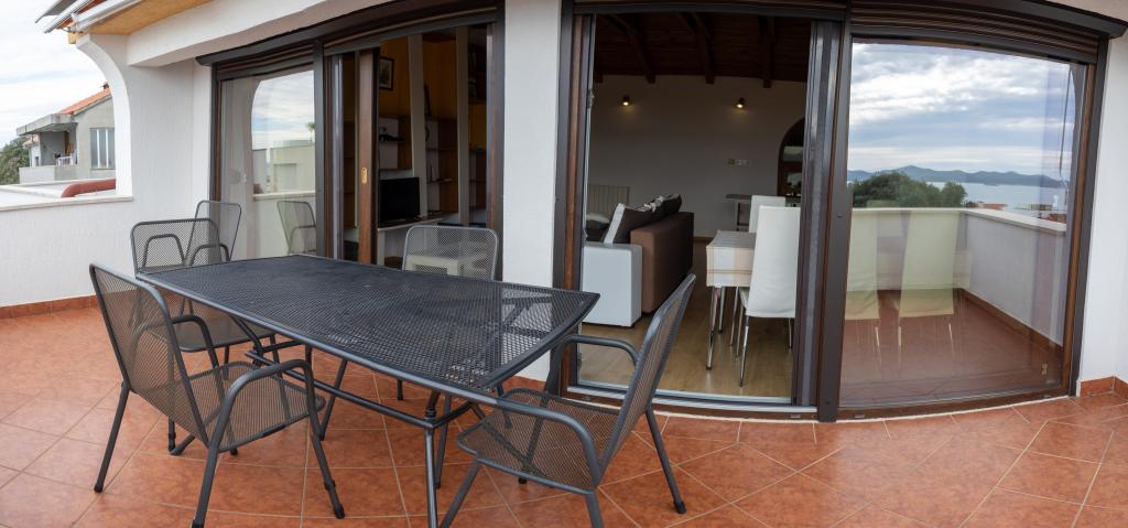 Tágas, 3 szobás apartman (100 m²) az Anica rusztikus ház 2. emeletén, a csendes Diklo negyedben, mindössze 6 km-re Zadar központjától és 100 méterre a tengertől. Az apartman egy nagy nappalival és étkezővel (38 m²) rendelkezik, amely műholdas TV-vel, légkondicionálóval és tengerre néző terasszal felszerelt. Két kényelmes hálószoba kínál rugalmas elhelyezést - az egyikben egy franciaágy, a másikban egy egyszemélyes és egy franciaágy, valamint saját zuhanyzó/WC található. Mindkettő légkondicionálóval és teraszkapcsolattal rendelkezik. A teljesen felszerelt, nyitott konyha sütővel, mosogatógéppel, kerámia főzőlappal, mikrohullámú sütővel és kávéfőzővel rendelkezik. Egy további zuhanyzó/WC és egy mosógép áll a vendégek rendelkezésére. Három déli fekvésű, bútorokkal berendezett terasz tengerre néző kilátással rendelkezik, és tökéletes hely a kikapcsolódásra. Parkolás két autó számára a telken.