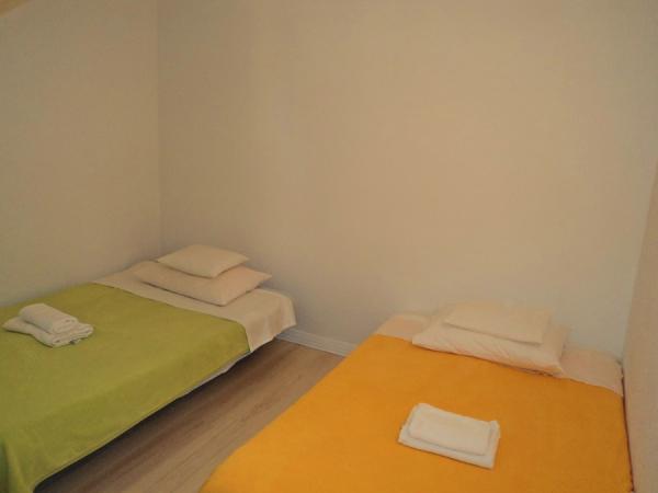 Üdvözöljük egy teljesen felújított, két hálószobás apartmanban Zadarban a Borik területen. A létesítmény az aktív és felejthetetlen üdülés (strand, sportlétesítmények, éttermek, üzletek, disco bár ...) közelében található. A tenger mindössze 3 perces sétára található a lakásban. Zadar történelmi magja 20 perces sétával elérhető. Az apartman Jovic 100 méterre fekszik a buszmegállótól, amely gyakori vonalakat kínál Zadar központjához. Zadar történelmi magja, ahol a vendégek láthatják a híres Tengeri Szervet, a Szent Gyula templomot. 1200 éves Donatus és egy ősi római fórum maradványai egy kis félszigeten találhatóak. Zadar nagyon kedvező helyzetben van a négy nemzeti park - Kornati, Paklenica, Krka és Plitvicei tavakra. Lehetőség van kirándulni a nemzeti parkokba. A vendégek ingyenesen használhatják a parkolót.