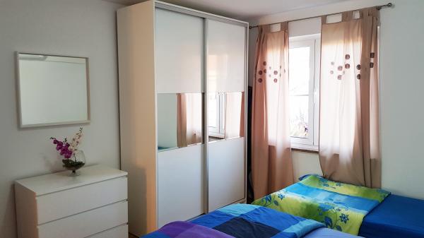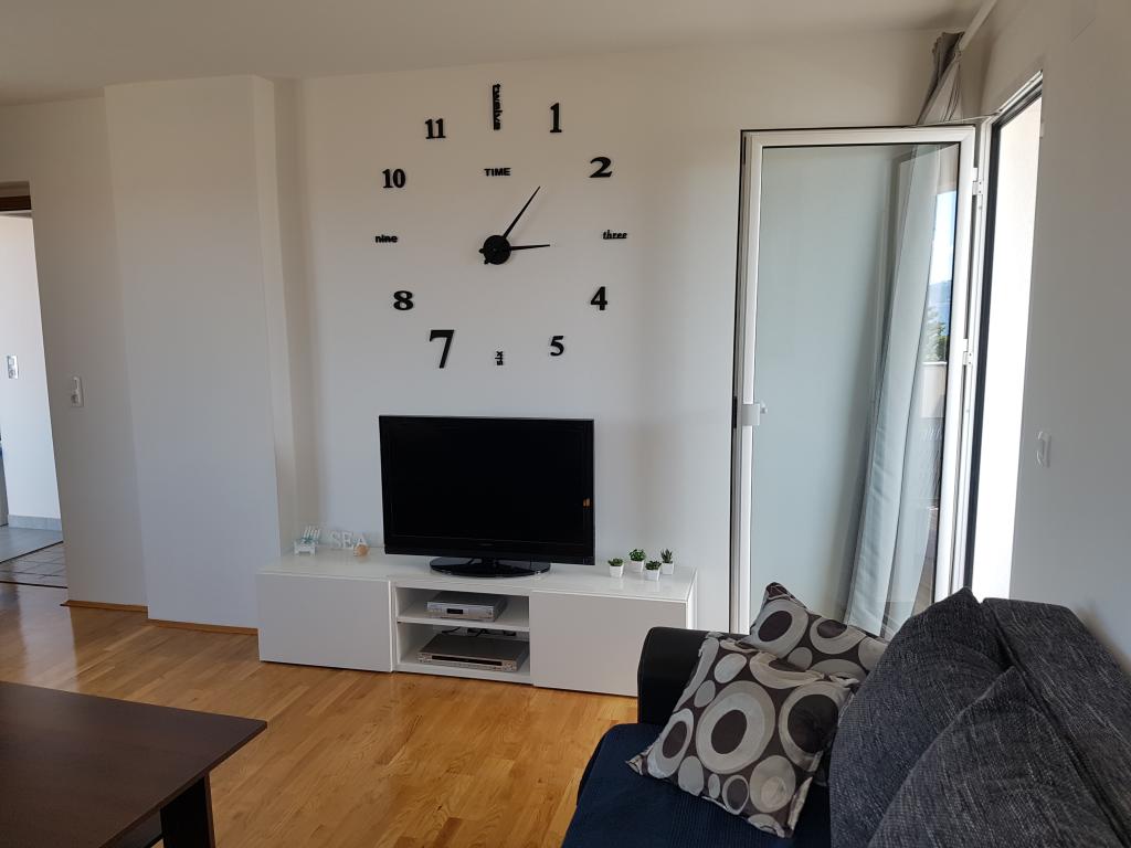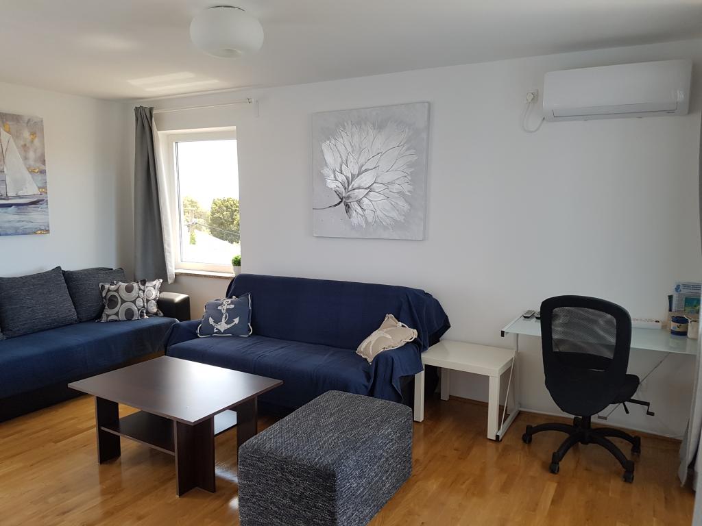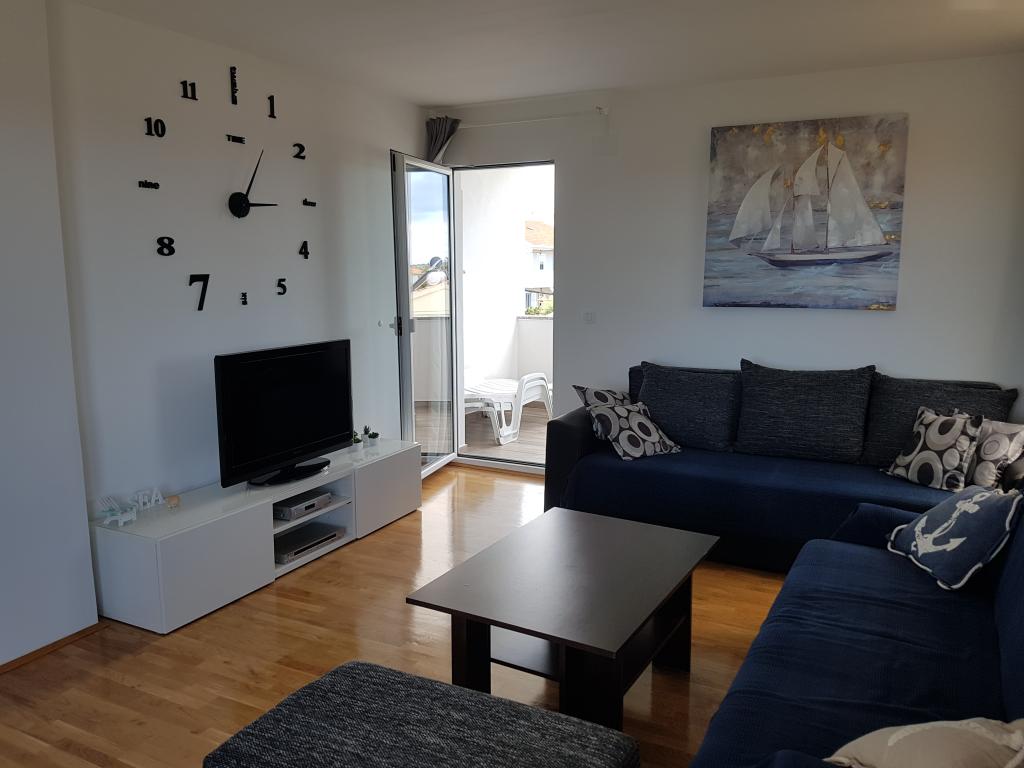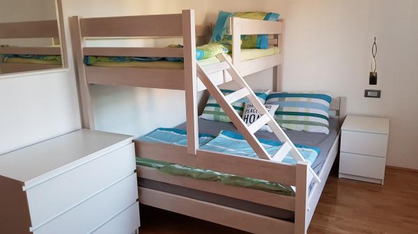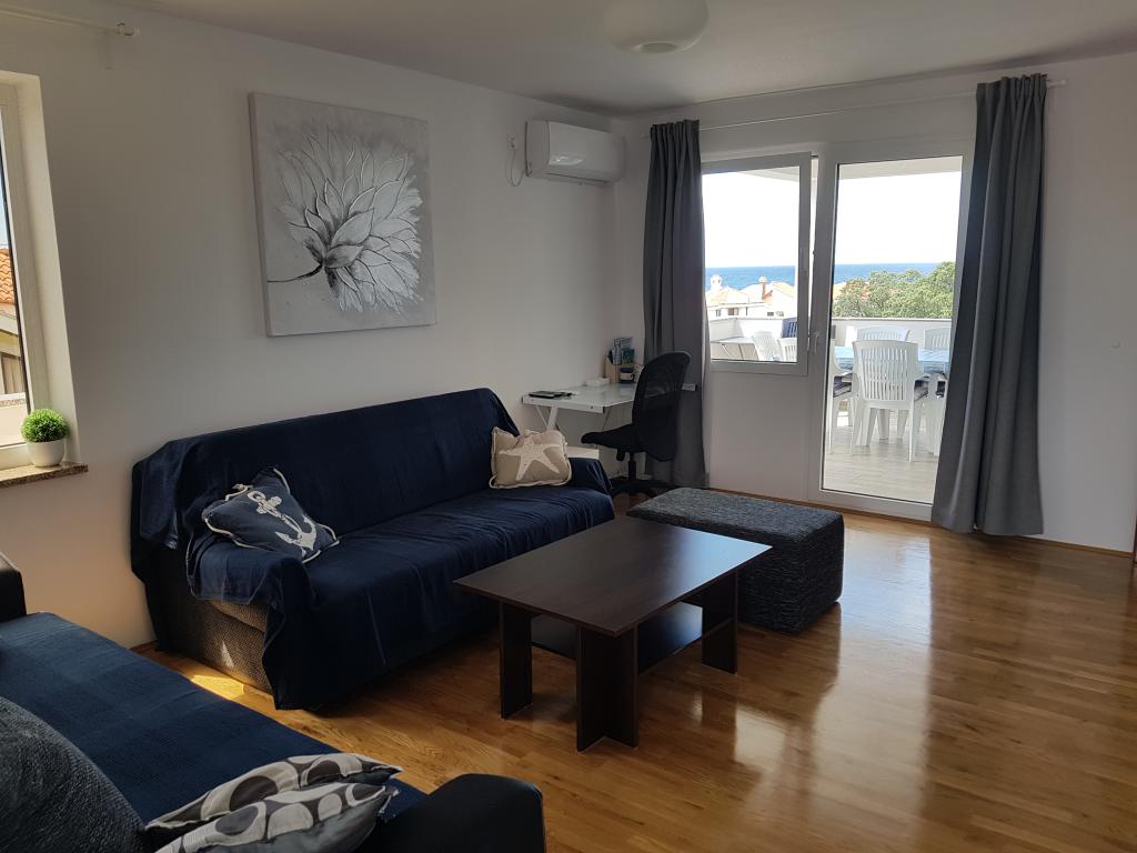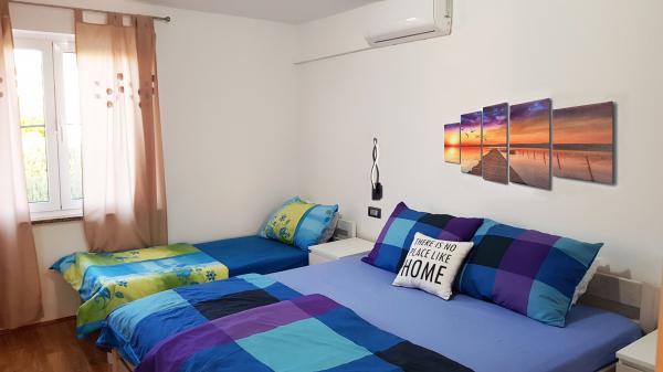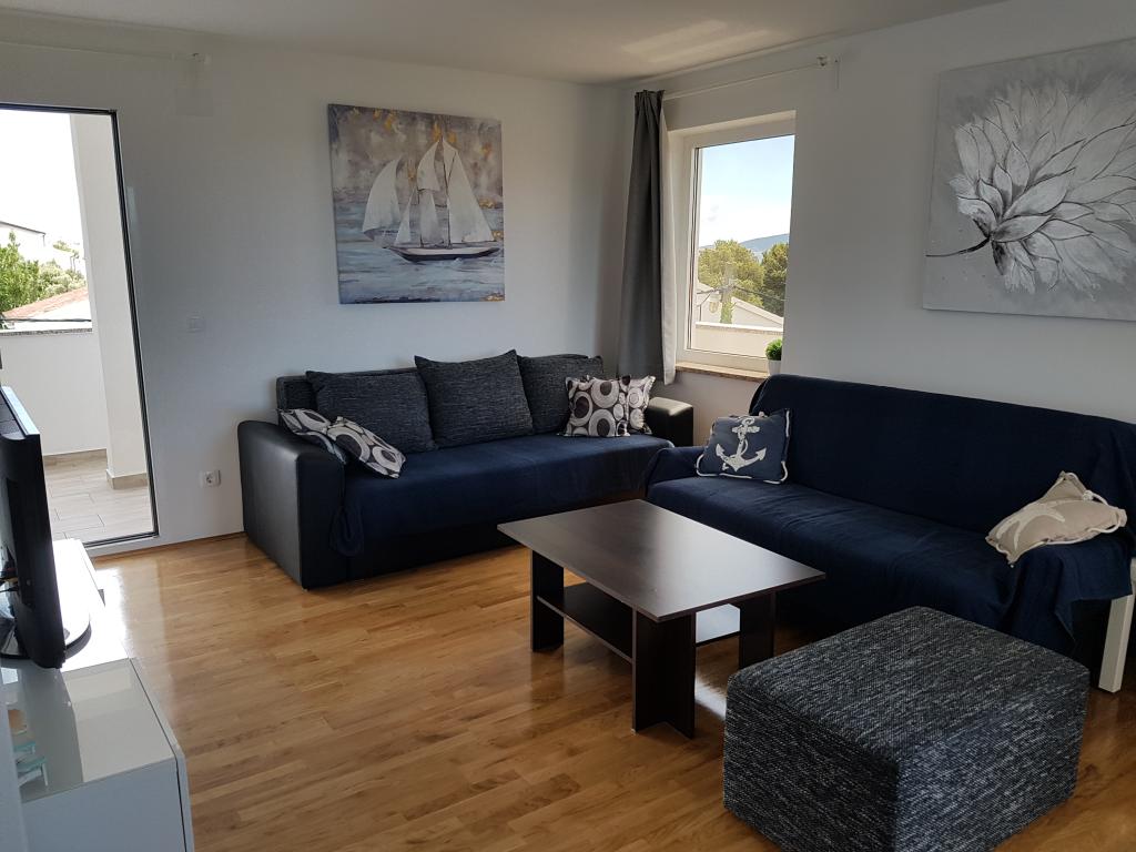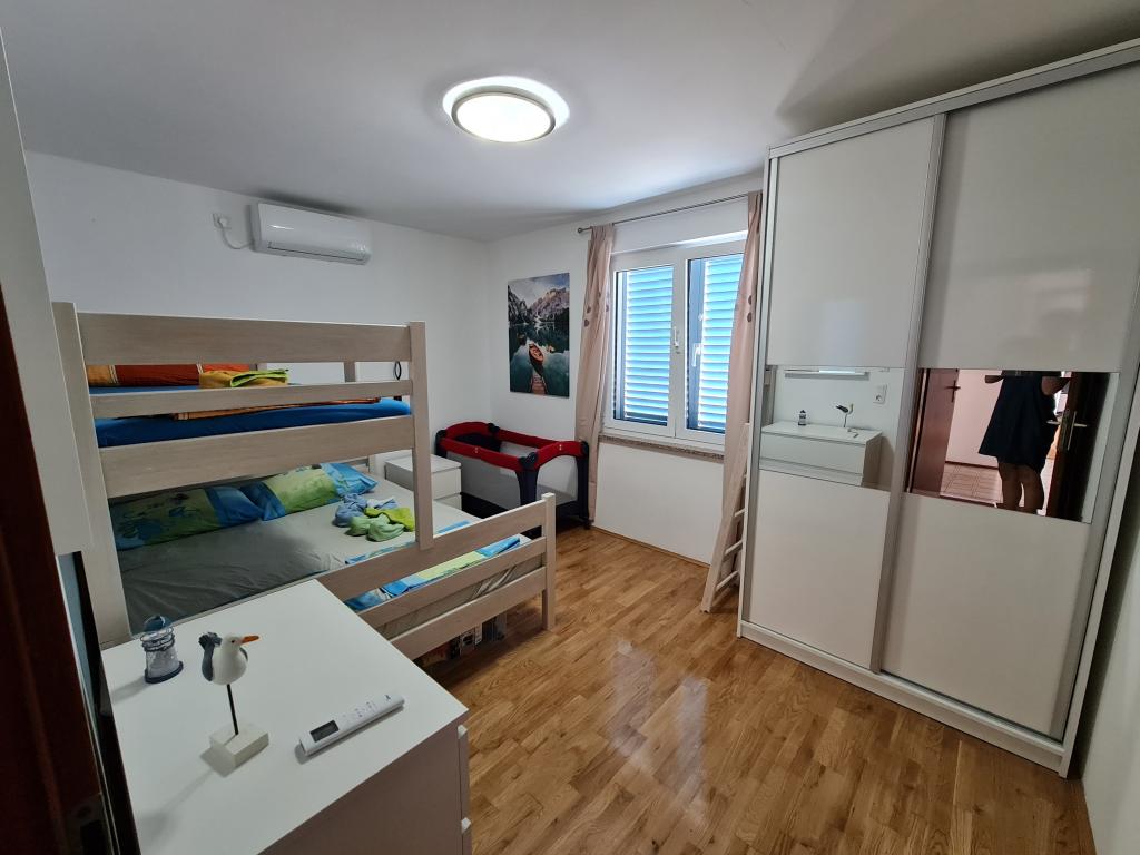 Az apartman csendes helyen található, 40 méterre a strandtól. 140 m2 -es területe 3 hálószobával, 1,5 fürdőszobával, konyhával, nappalival és két tengerre néző terasszal rendelkezik. Kiválóan alkalmas nagycsaládosoknak vagy 2 családnak, akik nem bánják, hogy együtt élnek, és szeretnének egy kicsit spórolni. Fiatal párok számára is kiváló, akik jól érzik magukat. Elég kényelmes 10 ember számára. Ha többnek el kell jönniük, minden lehetséges :) A lakás a képen látható ház felső emeletén található, így gyönyörű a kilátás. Az apartman felszereltsége: TV, műholdas, DVD -lejátszó, légkondicionálás minden szobában, mosogatógép és mosógép. A Wi-Fi ingyenes az apartmanban. A kertben grillező és asztalitenisz is rendelkezésre áll. Parkolás az udvaron lehetséges. Nem lakunk házban, így többnyire egyedül leszel. :)