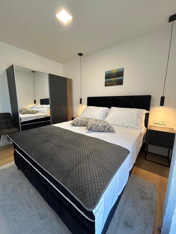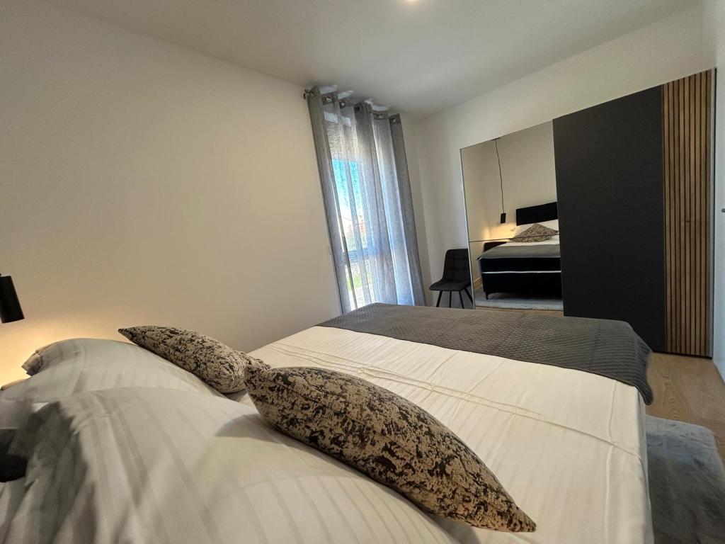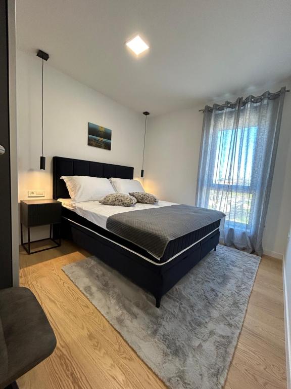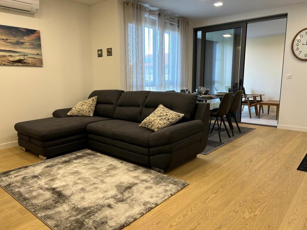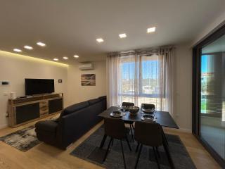 Új!!! Az apartman a következőkből áll: két hálószoba nagy ággyal, tágas nappali étkezővel és konyhával, fürdőszoba, valamint kijárat a loggiára... Modern berendezésű apartman a város csendes részén, biztonságos parkolóhellyel, közel a strandhoz, üzletekhez, éttermekhez, sétányhoz, teniszpályákhoz, kávézóhoz, játszótérhez, közel a kikötőhöz - csónakbérlési lehetőség, ...