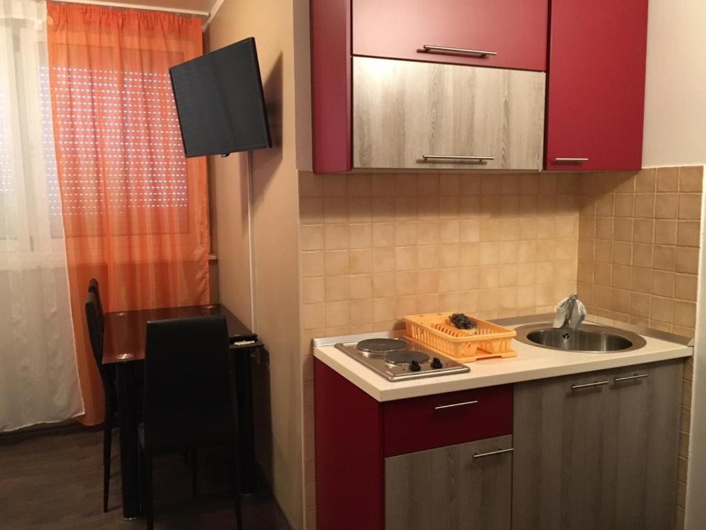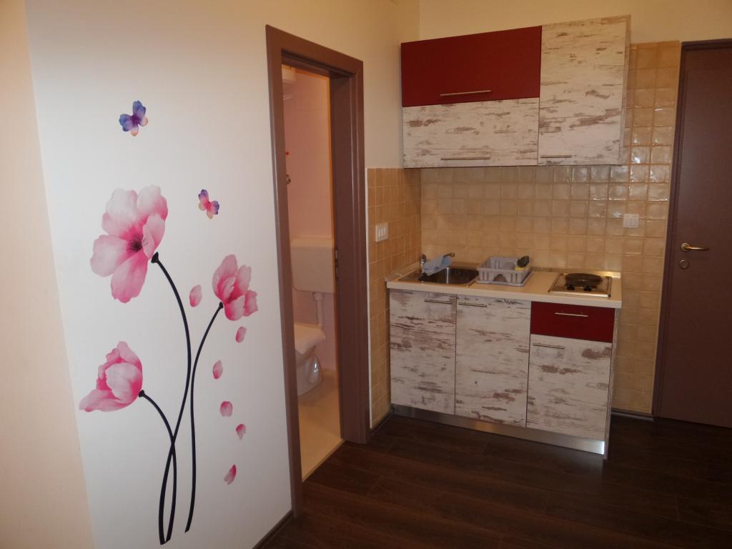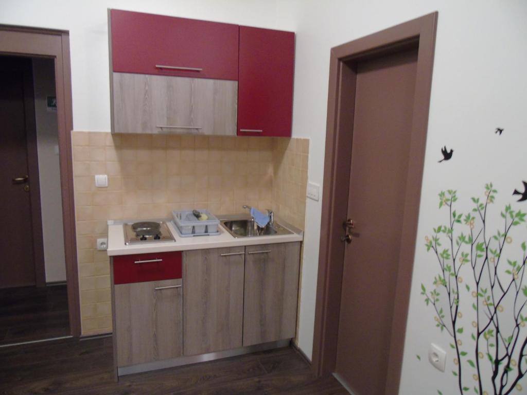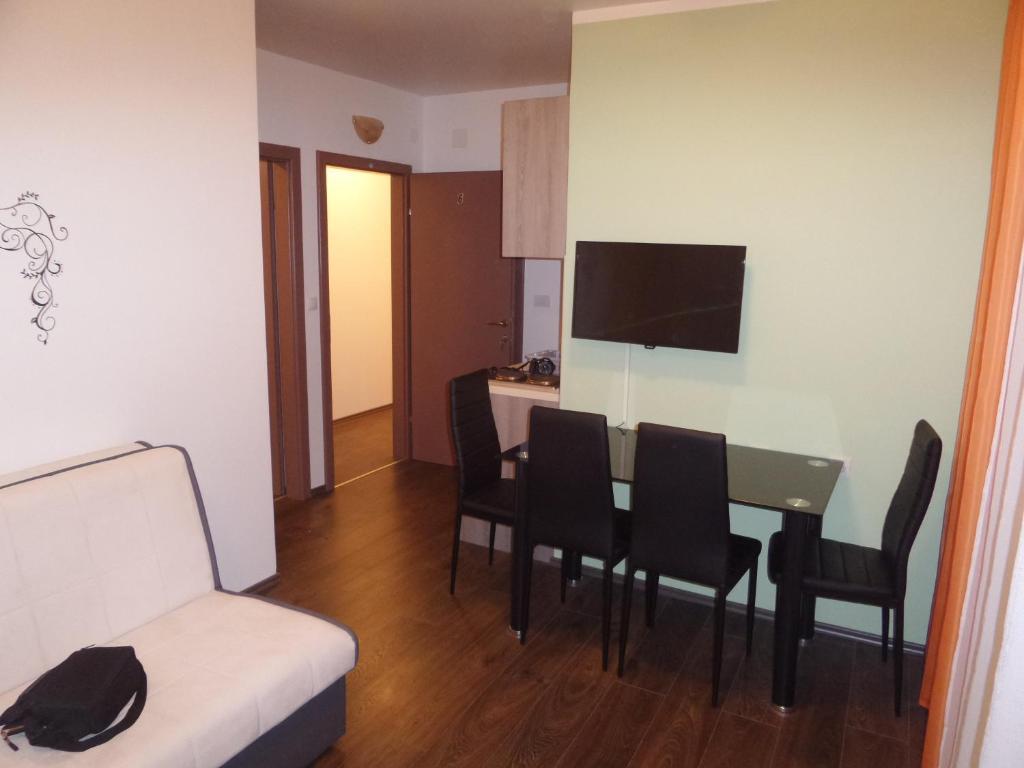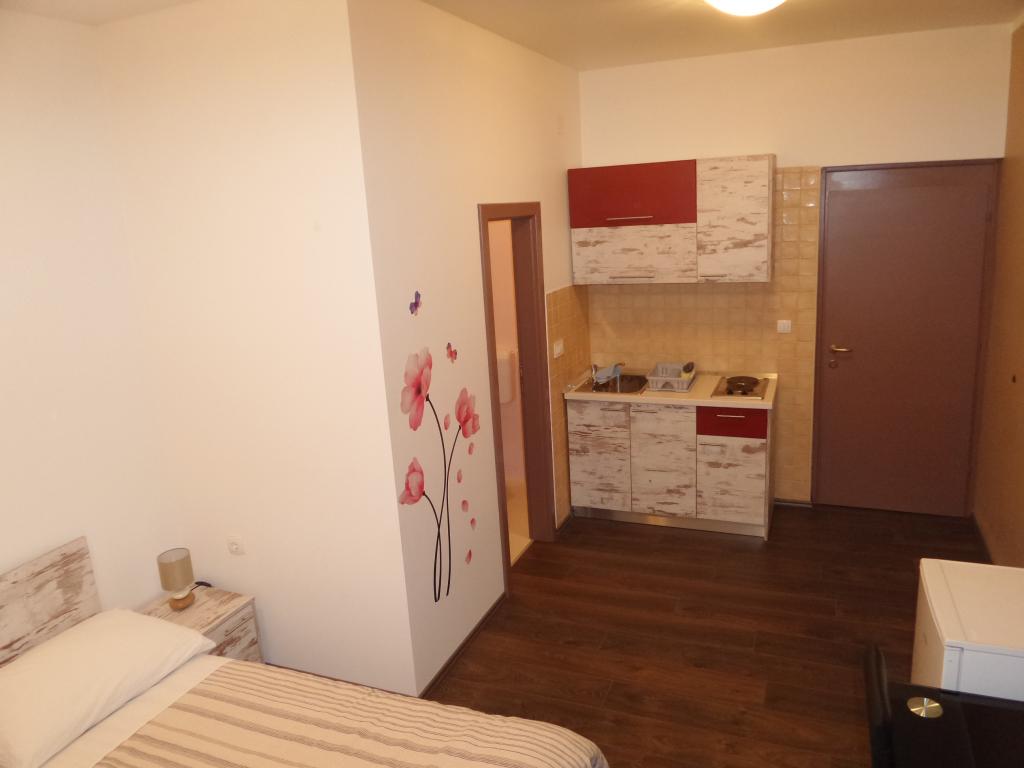 Teljesen berendezett apartmanokat bérelnek 2, 3, 4 fő részére és szobákat 2 fő részére. Egy nappali étkezőasztallal, egy konyha minden szükséges eszközzel, főzőlap, hűtőszekrény és fagyasztó (a szobák közös konyhával rendelkeznek) és egy ágy. Minden lakosztályhoz és szobához saját, zuhanyzós fürdőszoba tartozik. Az apartmanok síkképernyős TV-vel, műholdas TV-vel és légkondicionálóval felszereltek. Ingyenes internethasználat. Ingyenes parkolás az épület előtt. Extra személyek felár ellenében tartózkodhatnak 15 EUR / fő áron. Olcsó taxi szállítás a lakásba és a lakásból.