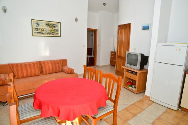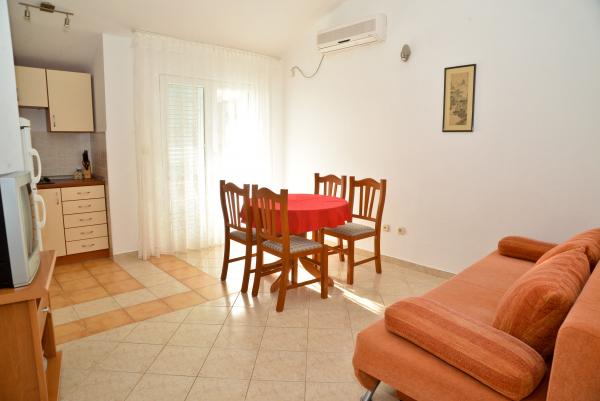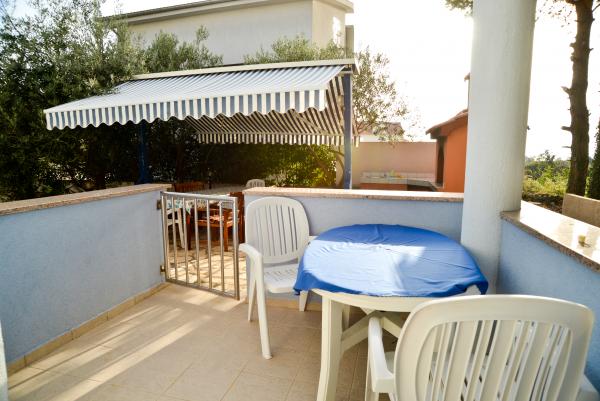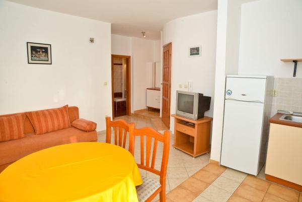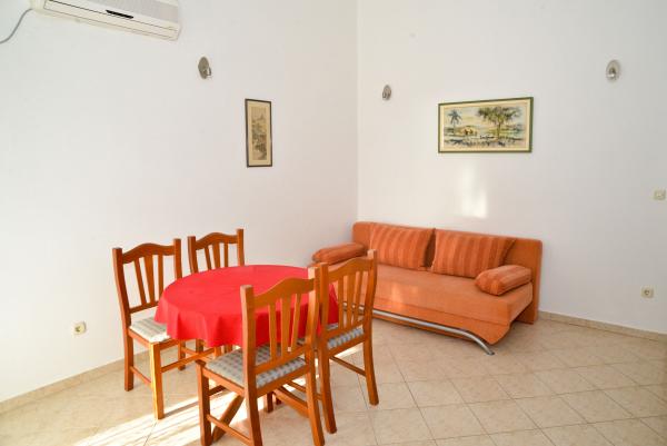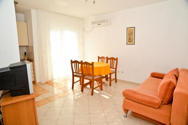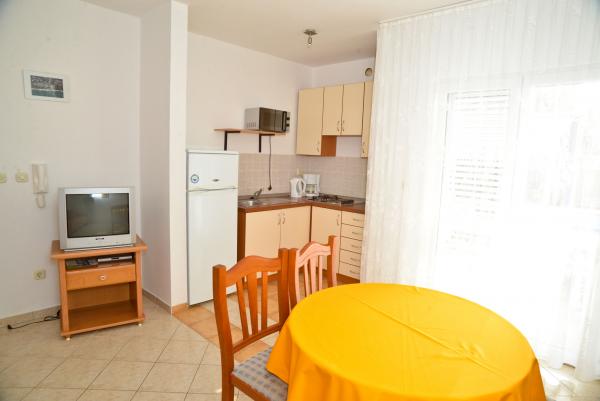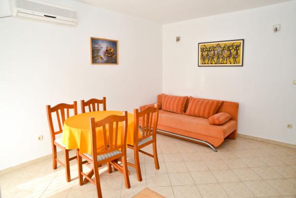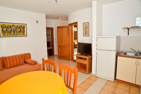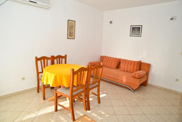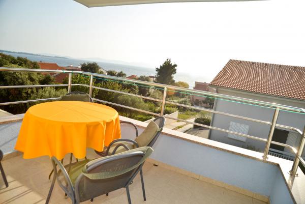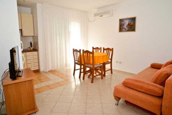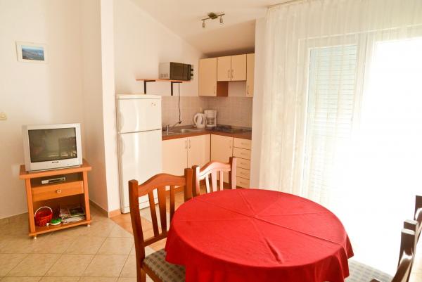 Blue Apartments, teljesen felszerelt, csendes környezetben, csak 70m-re a strandtól, kínál kellemes környezetet kikapcsolódásra és szórakozásra. Kilátással a tengerre és a szigetre az erkélyen van valami, hogy emlékezni fog egy életen át. Blue apartmanok találhatók a házban, és a következő öt apartmanok közül az egyik akadálymentesített. Az udvaron egy barbecue, amely rendelkezésre áll minden alkalommal. Ingyenes parkolási lehetőség. A strand előtt a kavicsos és alkalmas a gyermekek számára minden korosztály, míg a felnőttek élvezhetik a szabad napágyakkal és napernyőkkel. Internet kapcsolat áll rendelkezésre, és ingyenes a lakások és a strandon.