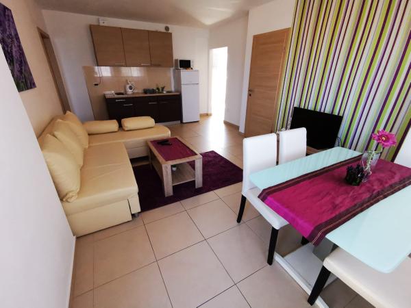 Rendezett, csendes, tiszta, szép kilátás a teraszról. A házigazda őszintén ismertette a lakást, kedves, barátságos, gyorsan válaszol, ha bármire szüksége van. Üzletek, pékségek, éttermek közelében. Közel a buszmegállóhoz, ami Zadarba és vissza visz. Leparkolhatja az autóját, és csak akkor indítja be, ha elindul hazafelé. Minden dicséret és ajánlás csak akkor.