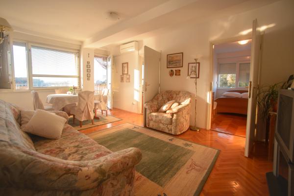 Az apartman a városközpont és a strand közelében található, tengerre néző, 3. emeleten. A szállásegység alapterülete 60m2, 2 hálószobából áll, az egyik 2 külön ággyal / 90X200/, a másik egy franciaággyal / 160X200/. A nappaliban van egy kanapé az ötödik személy számára. Konyha felszerelt: mikrohullámú sütő, kávéfőző, vízforraló, sütő. A fürdőszobában zuhanyzó és mosógép található, a nappaliból és egy hálószobából terasz nyílik A bérleti díj tartalmazza az ágyneműt, törölközőt, WI-FI-t, idegenforgalmi adót