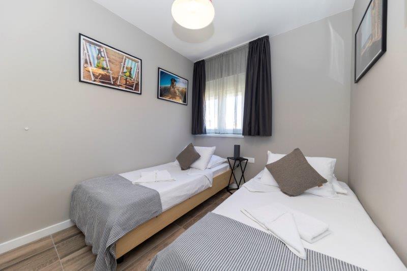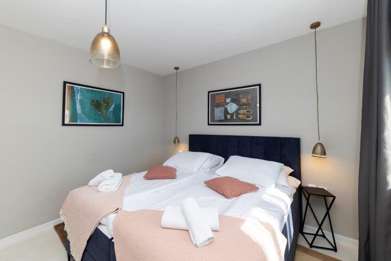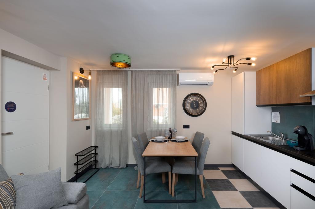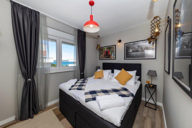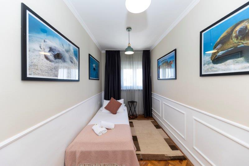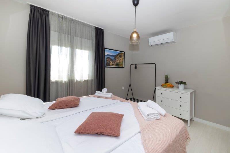 A lakás nagyon nagy. Nagyon kényelmes ágy kemény matraccal. Nem olyan messze a strandtól, mindössze 2-3 perc sétára. Nem szerettük a Borik homokos strandot, és a közeli köves strandon (Plaža Borik) szálltunk meg, és a mólón vízbe ugortunk. A víz hőmérséklete tökéletes volt.