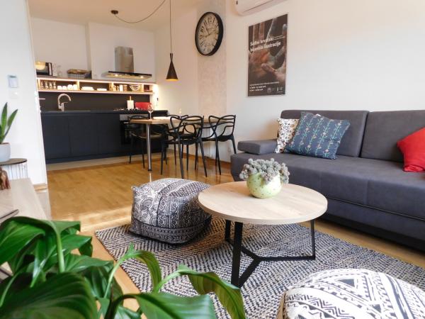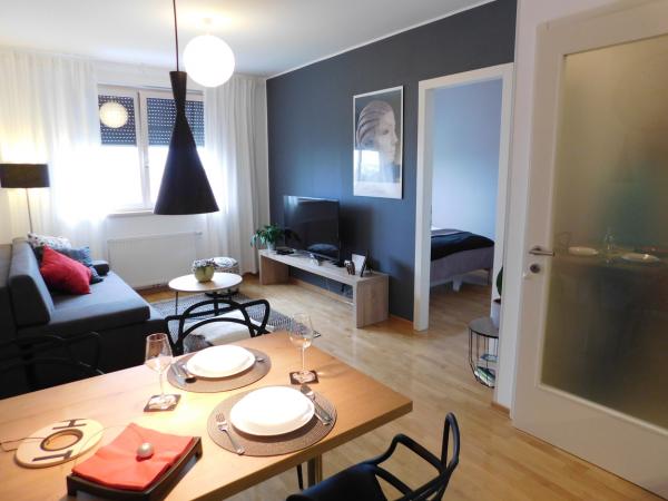 Új, modern apartman található egy új, éppen befejezett épület 7. emeletén, 300 méterre a legnagyobb sportcsarnoktól Horvátországban, Zágráb Arénában. Az apartman teljesen felszerelt. A parkolóhelyet az épület melletti parkolóban (rámpa biztosítja) biztosítják. Az apartman digitális zárral van ellátva, és lehetővé teszi a teljes önálló érkezés és távozás lehetőségét az épület egy belépési kódjával (az intercomon feltüntetve) és egy másik egyszeri belépési kóddal a lakás számára. Ezt követően a kártyát intelligens kártyával adja meg. A folyosón egy konyha, egy hálószoba és egy fürdőszoba található. Két ember számára készült, kényelmesen és kényelmesen befogadóképessége legfeljebb három ember. Az apartmanban rövid, egyszerű utasítások várják az intelligens zárakat és készülékeket (termosztát, TV, LED világítás a konyhában, mosogatógép). Minden kérdésre a segítség 24 órán keresztül elérhető.