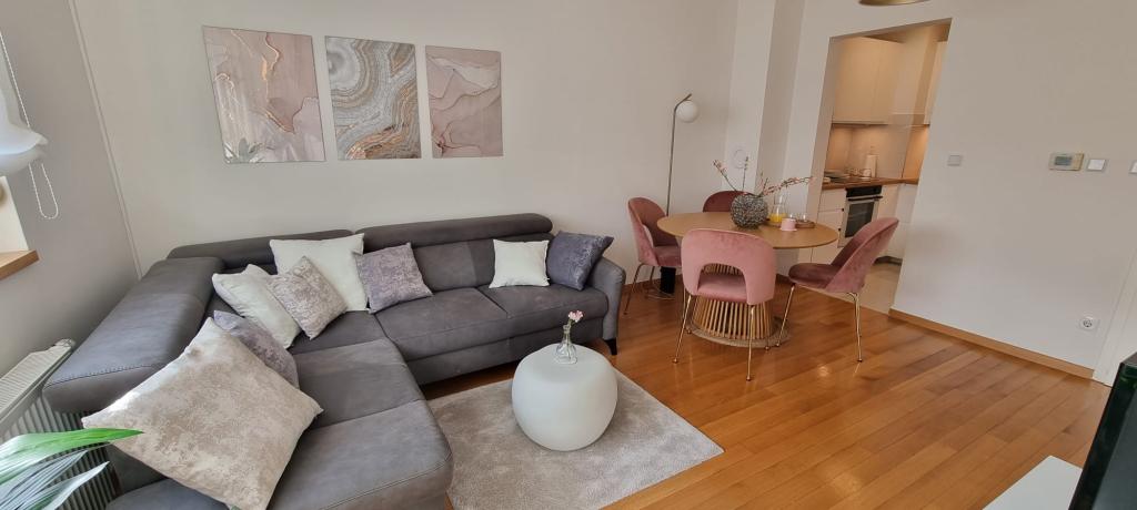 Gyönyörű, csendes és kényelmes apartman erkéllyel, napos oldalon. Mindennel felszerelt, amire egy nyaraláshoz szüksége lehet. A villamosmegálló közelében. Ingyenes parkolás az épület közelében.
