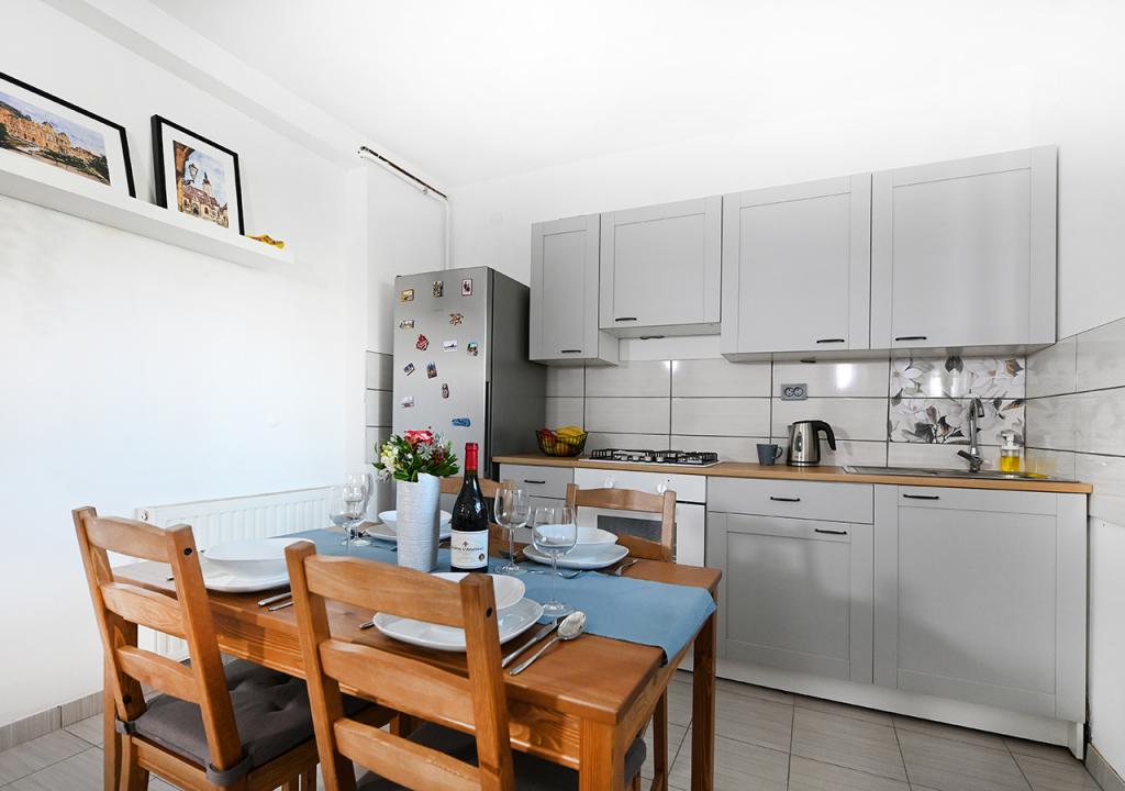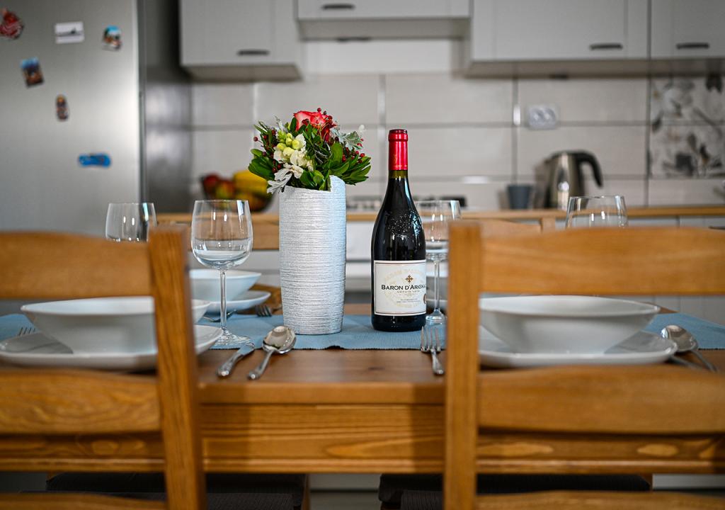 Lakossági adót az az ár tartalmazza.Kávéfőző, mikrohullámú sütő, indukciós tányér, edények, poharak, bögrék. Játszótér az épület mellett. Parkoló a bekerített udvarban.