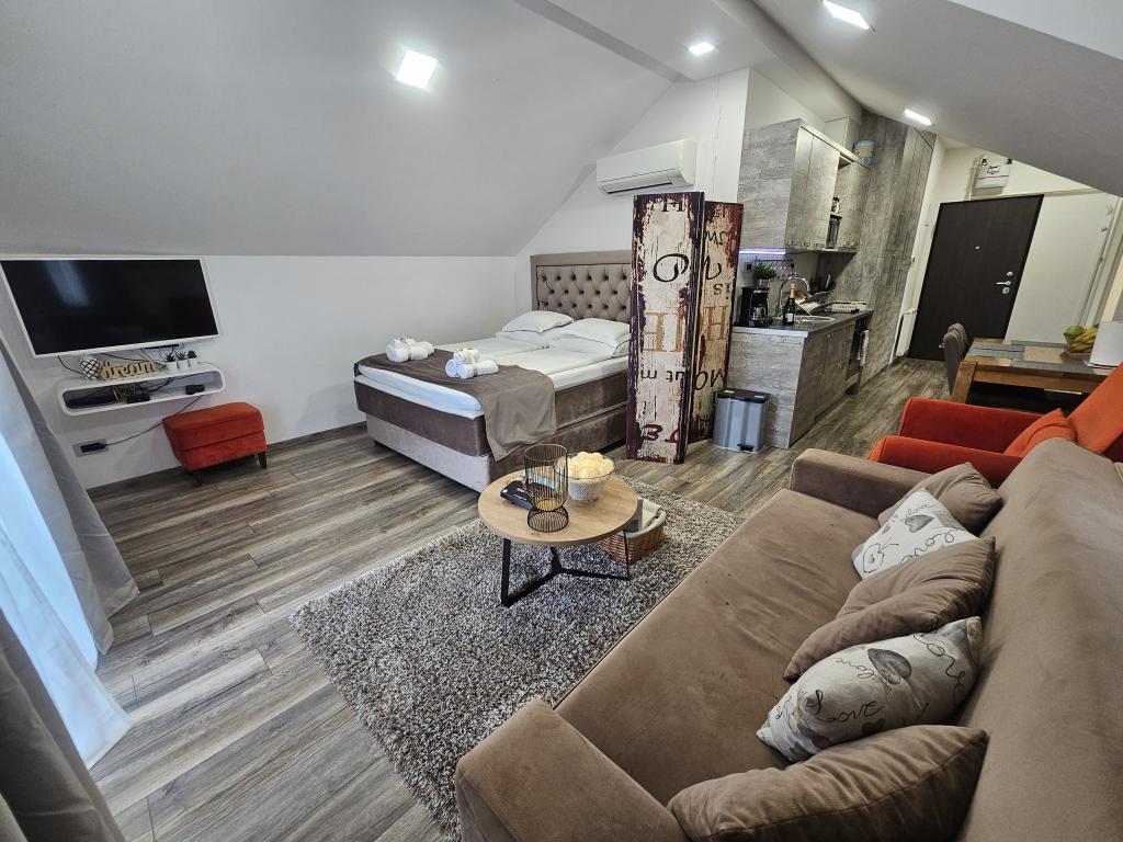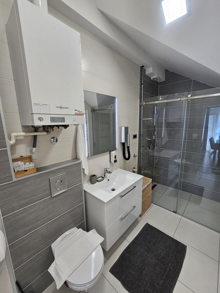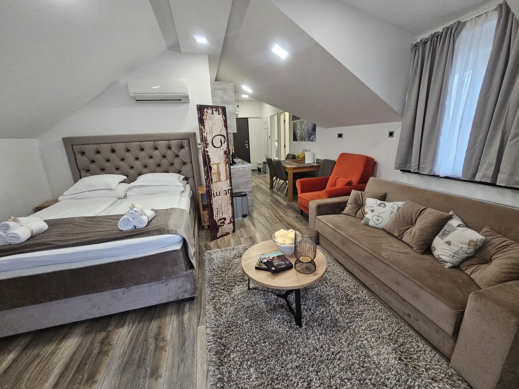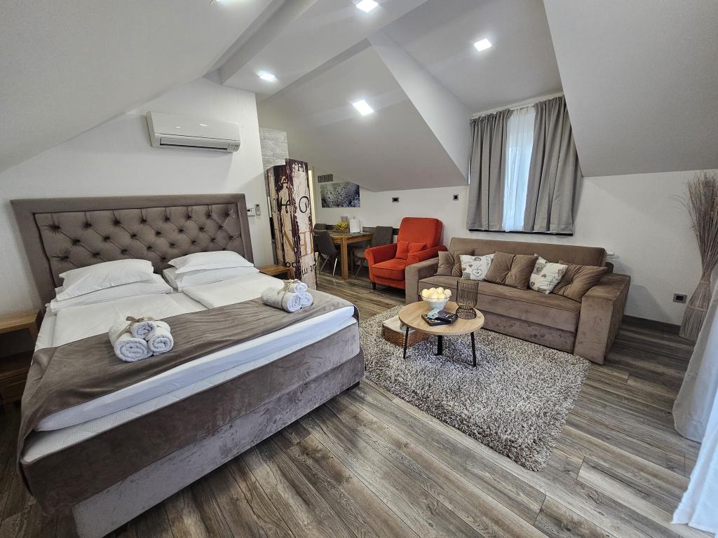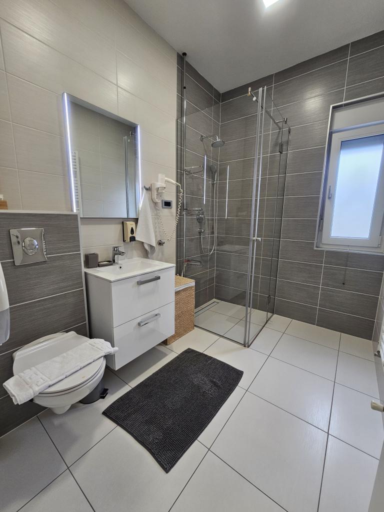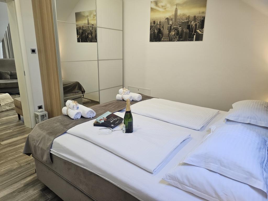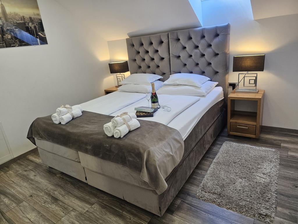A Villa Agram egy csendes utcában található (cím: Poljanička 2a), Zágráb régi Trešnjevka negyedében. A létesítmény teljesen új építésű és 2018-ban nyílt meg. Vendégeink számára ingyenes parkolási lehetőség biztosított az épületen belül és előtte. A Villa Agram 5 fényűzően berendezett apartmant tartalmaz. A legközelebbi bolt 300 m-re, éttermek és kávézók pedig kb 500 m-re találhatók az épülettől. A ljubljanicai körforgalom mintegy 800 méterre található a Villa Agramtól, így a vendégek villamossal vagy busszal is eljuthatnak a központba vagy Zágráb más részébe. számú villamos A 12-es út, amely közvetlenül a J. Jelačić Trg ban-hoz vezet, mindössze 19 perc alatt ér célba. Minden vendéget frissen mosott és tiszta ágyneművel és törölközőkészlettel várnak. A fürdőszobák teljesen felszereltek minden fürdőszobai kiegészítővel (vécépapír, folyékony és kemény szappan, tusfürdő, hajbalzsam, zuhanysapka, fürdőszobai papucs, fésű, kozmetikai készlet) és falra szerelhető hajszárítóval.