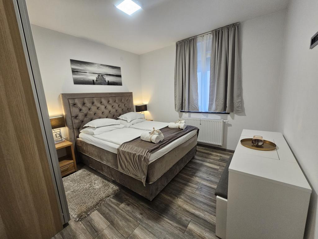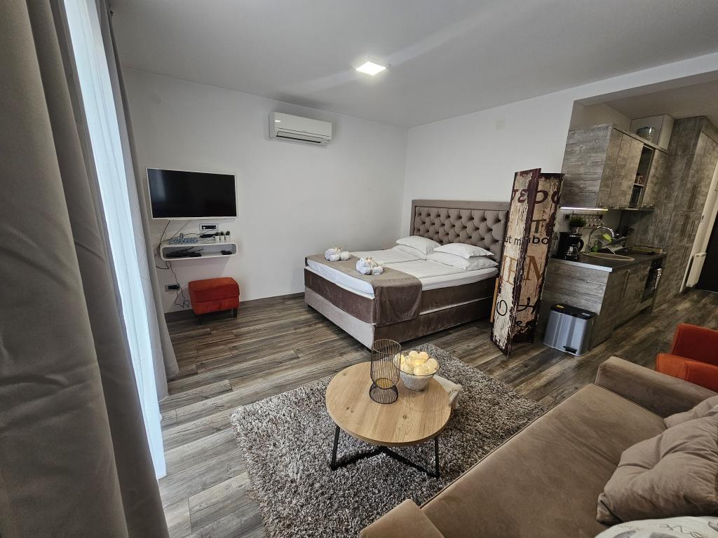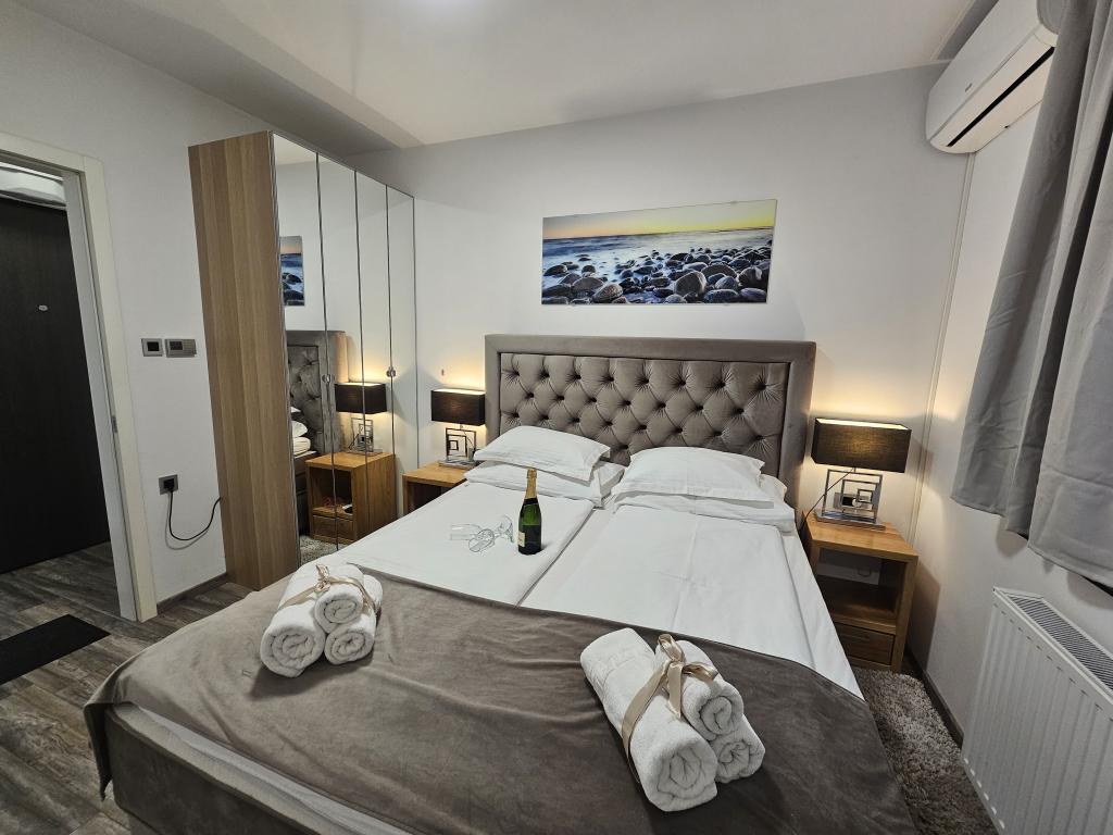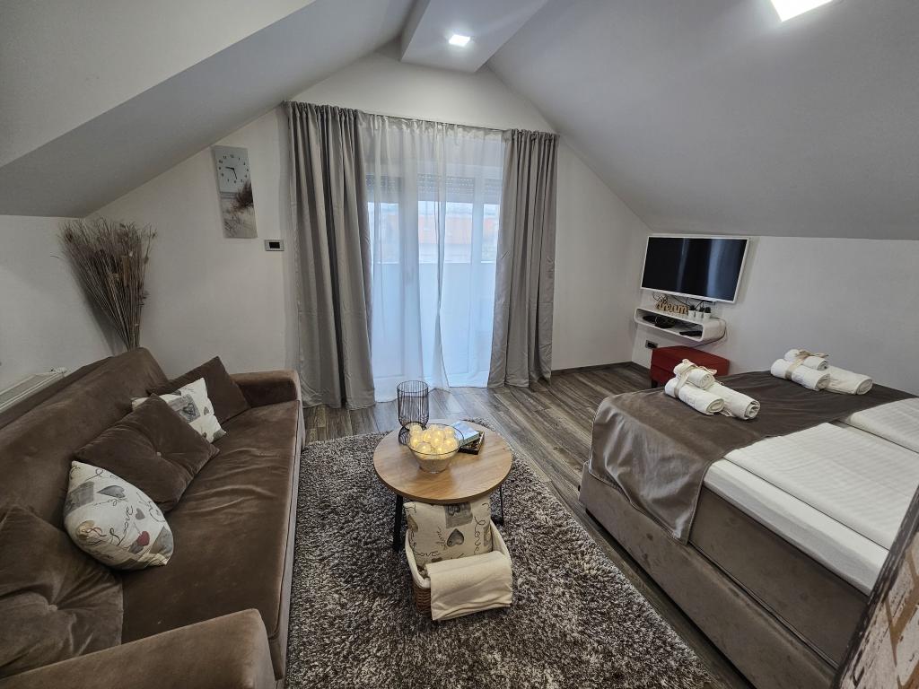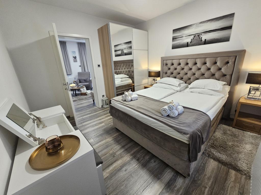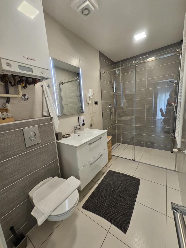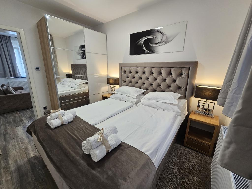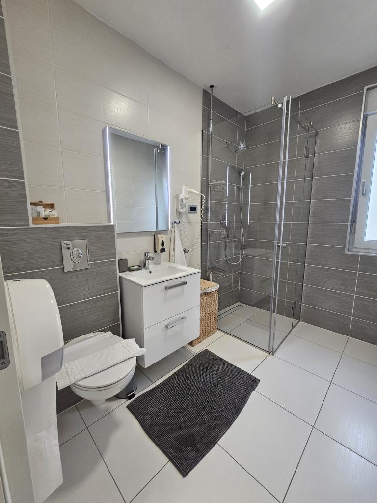 A Villa Agram egy csendes utcában található (cím: Poljanička 2a), Zágráb régi Trešnjevka negyedében. A létesítmény teljesen új építésű és 2018-ban nyílt meg. Vendégeink számára ingyenes parkolási lehetőség biztosított az épületen belül és előtte. A Villa Agram 5 fényűzően berendezett apartmant tartalmaz. A legközelebbi bolt 300 m-re, éttermek és kávézók pedig kb 500 m-re találhatók az épülettől. A ljubljanicai körforgalom mintegy 800 méterre található a Villa Agramtól, így a vendégek villamossal vagy busszal is eljuthatnak a központba vagy Zágráb más részébe. számú villamos A 12-es út, amely közvetlenül a J. Jelačić Trg ban-hoz vezet, mindössze 19 perc alatt ér célba. Minden vendéget frissen mosott és tiszta ágyneművel és törölközőkészlettel várnak. A fürdőszobák teljesen felszereltek minden fürdőszobai kiegészítővel (vécépapír, folyékony és kemény szappan, tusfürdő, hajbalzsam, zuhanysapka, fürdőszobai papucs, fésű, kozmetikai készlet) és falra szerelhető hajszárítóval.