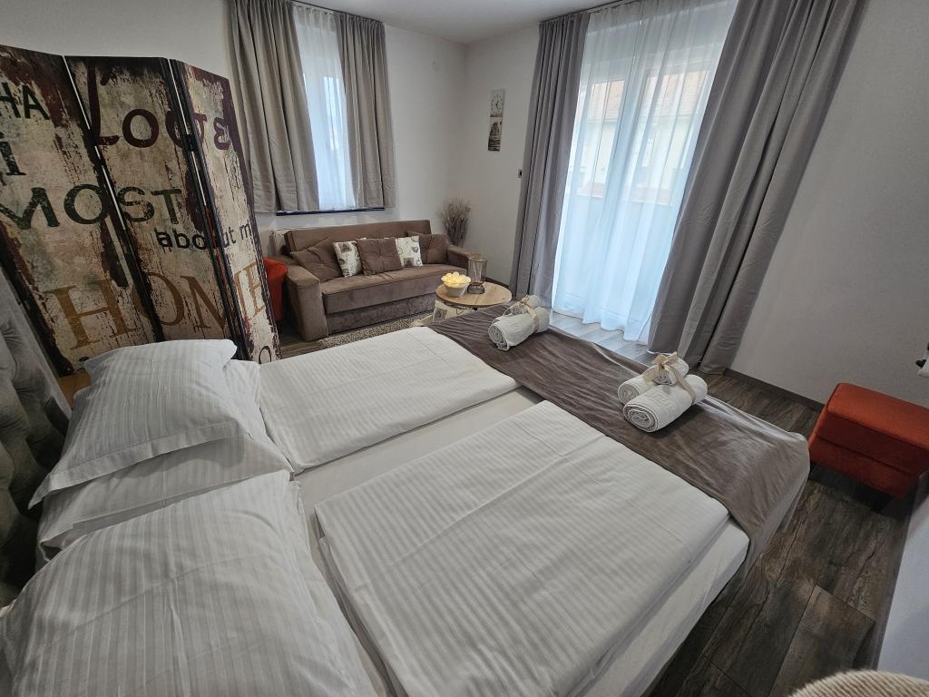 Tovább Kevesebb képekBejelentkezés: 15:00-23:00 Kijelentkezés: 00:00-10:00 Gyermekek 3 éves korig ingyenesen szállhatnak meg az apartmanban. A fizetés készpénzben vagy bankszámlára történő fizetéssel történik, foglaláskor esetenként a teljes bérleti díj 20%-ának megfelelő előleg fizetése szükséges. Háziállat sajnos nem megengedett. Nagyobb vendégcsoportok tartózkodása megengedett a létesítményben, de nem ünnepségek, bulik céljából. A házirend betartása kötelező (23 óra után csend), kérjük a vendégeket, hogy jelezzék a szálláshelyre érkezés várható időpontját és tájékoztatást arról, hogy autóval érkeznek-e. Pénteken és szombaton az éjszakák minimális száma 2. Közvetlen foglalás esetén kedvezményt, hosszabb tartózkodás esetén további kedvezményt adunk.