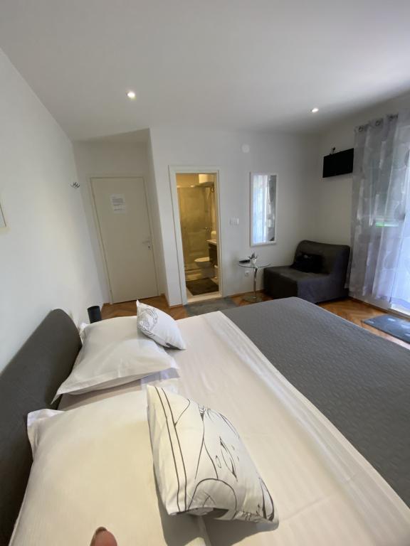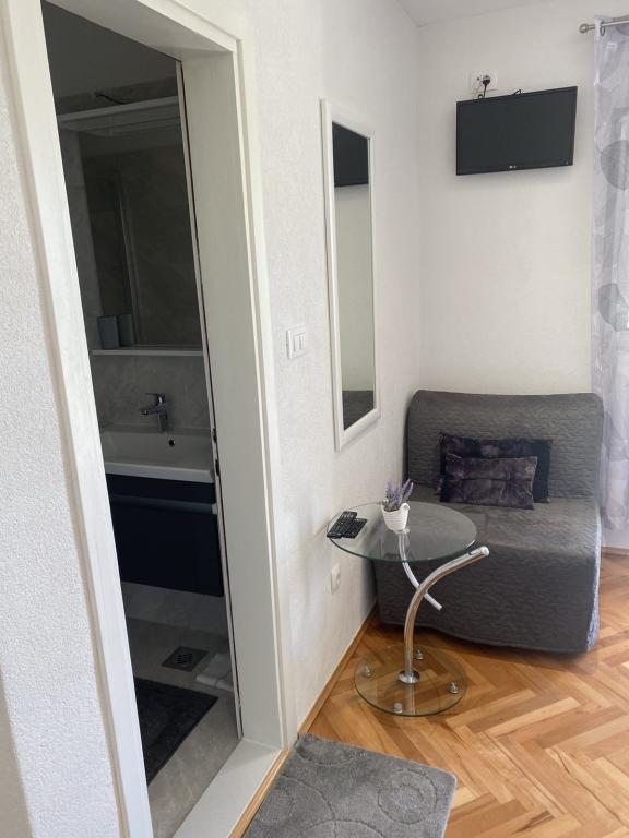 A vendégszerető és vidám házigazdák szeretettel várják Önt egy családi ház kellemes légkörében a makarskai riviéra egyik legszebb részén. A híres dalmát város központjától 100 méterre, a régi ferences kolostorral szemben található ez a kényelmes szálláshely, amely minden összetevőt kínál a pihentető nyaraláshoz: tiszta és tágas szoba, felszerelt konyha, légkondicionáló és TV, terasz és biztonságos. parkolóhely. Gyönyörű kavicsos strandok, mindössze 2 percre a szállástól, változatos gasztronómiai lehetőségek és nagyon kellemes klíma vetett véget az i.