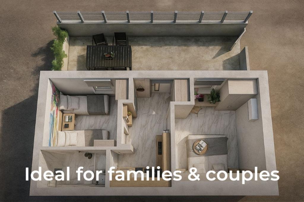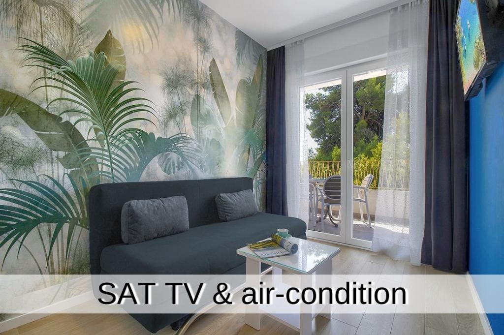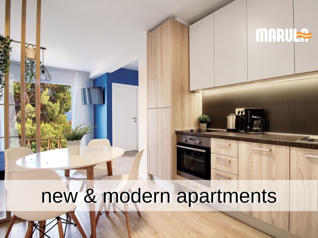 Az újonnan épült és modern felszereltségű Marula apartmanok egy gyönyörű családi házban találhatók, mindössze néhány perc sétára a strandtól, üzletektől és éttermektől. Minden apartman maximum 4 fő elszállásolására alkalmas, pótágy lehetőségével egy ötödik személy számára. Az apartmanokban egy hálószoba, egy nappali konyhával, fürdőszoba és terasz vagy erkély található. Az apartmanok légkondicionálóval, műholdas TV-vel, Wi-Fi internettel és biztonságos parkolóval rendelkeznek. Ezenkívül ingyenesen használhatja a kerékpárokat, grillezőt és mosógépet.