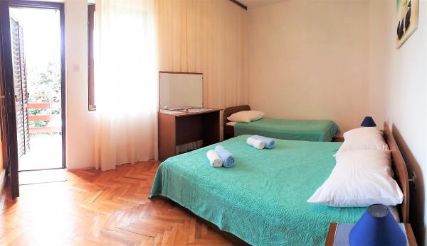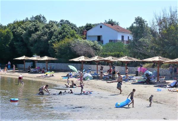 A House Irena egy tíz fős apartman - a ház első emeletén vannak szobák (két háromágyas erkélyes hálószoba, két kétágyas szoba és két fürdőszoba), a folyosón van egy légkondicionáló (az első emeleten). A földszinten található egy konyha, egy terasz és egy grillsütő (a ház tulajdonosai a földszinten - közös folyosó). A ház közvetlenül a part mellett található, 10 méterre a homokos strandtól, szabadtéri zuhanyzóval, elegendő parkolóhellyel, Wi-Fi-vel és TV-vel (SAT) rendelkezik.