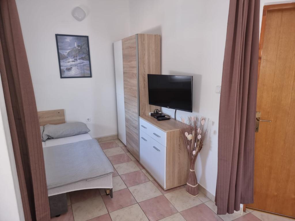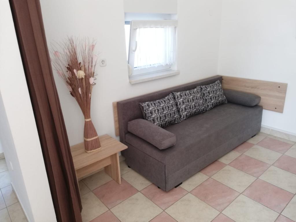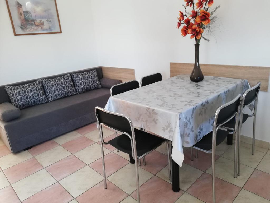 Teljesen felszerelt apartman Zaton (Nin) gyönyörű városában, amelyet Horvátország egyik legszebb strandja vesz körül. A lakás felosztása: konyha és nappali, fürdőszoba zuhanykabinnal és mosógéppel, folyosó, terasz, 1 hálószoba és 1 szétválasztható szoba paravánnal. Parkolóhely biztosított, mely a lakás erkélyéről látható. Az udvaron grillezési lehetőség lehetséges.