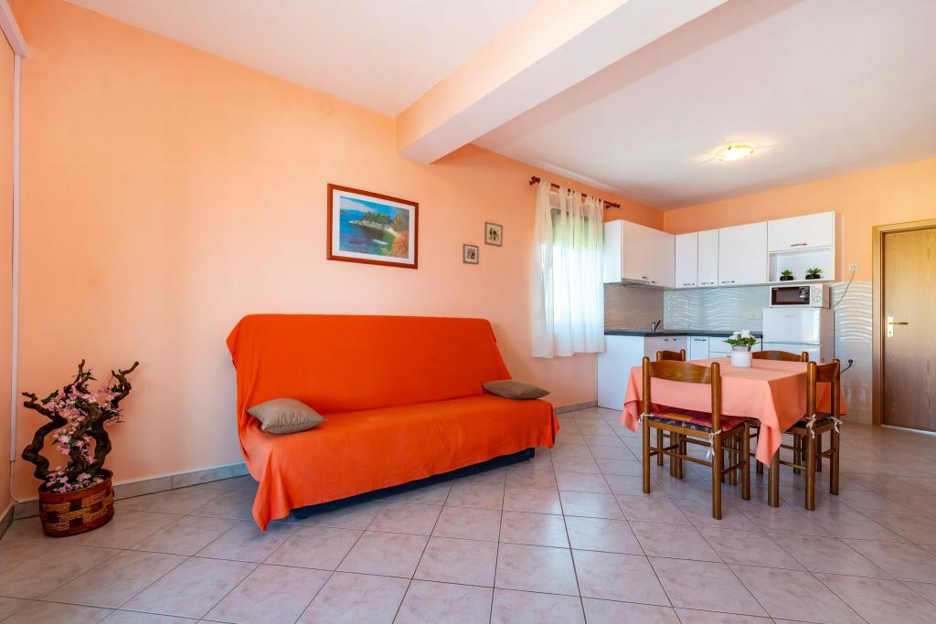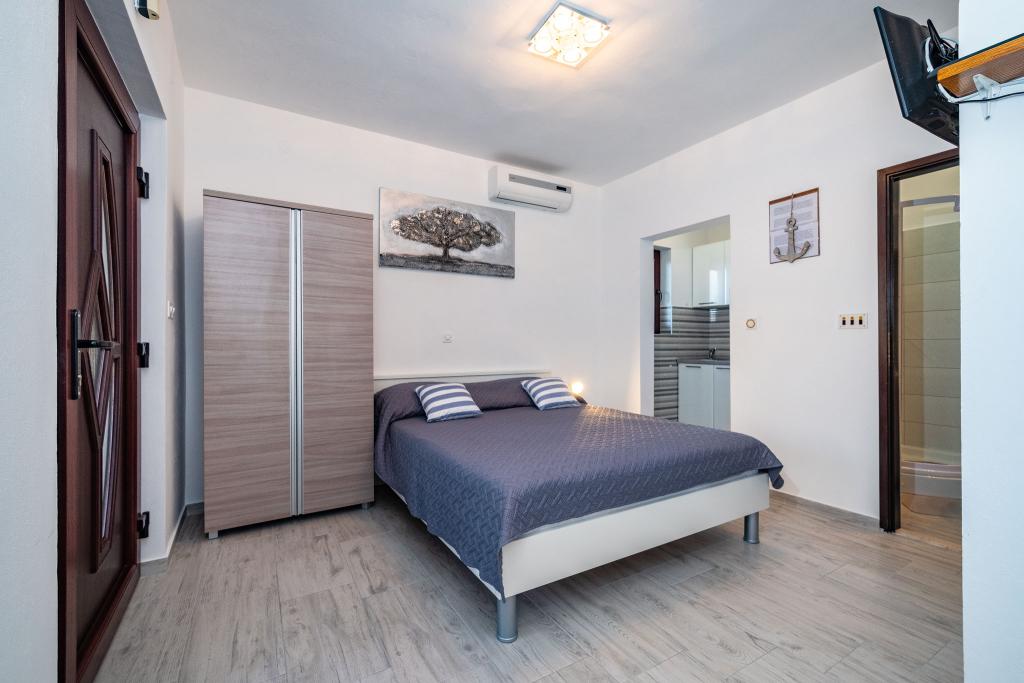 Lakossági adót az az ár tartalmazza. Foglalási visszaigazolás dokumentum foglalás eseténStúdióapartman, kellemes tartózkodás. Teljesen felszerelt, rendezett és tiszta. Gyönyörű terasz kilátással a tengerre. Parkolás az autóknak egész nap árnyékban. A házigazda hölgy rendkívül kommunikatív, udvarias, rendkívül kedves és profi. Az udvar és a környezet rendkívül rendezett. Minden dicséret és ajánlás mindenkinek. Visszajövünk!