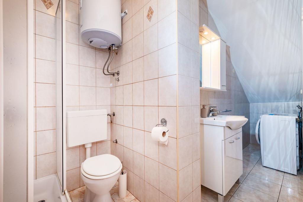 Ajánlás Mrs. Mirjana és szállása. A férjemmel 7 csodálatos napot töltöttünk el. A hölgy nem feltűnő, nagyon szelíd és befogadó, igazi háziasszony. A szállás egy teljesen felszerelt stúdióban kiváló volt, minden rendben volt és tiszta. A háziasszony saját termesztésű paradicsomával és uborkájával kedveskedett (úgy tűnik, sajnálta a sorsunkat, mert a mi házunkban amit nem tettek tönkre a betolakodók és a nap, azt tönkretette a friss jég). Elegendő hely a parkoláshoz. Szépen berendezett udvar. A legközelebbi strand szó szerint néhány lépésre van a háztól. A strand tiszta, a külső része beton, a tengerben homok van. 2 melegvizes zuhanyzó is rendelkezésre áll. Üzletek, éttermek, templom... minden közel van. Egyáltalán nem volt szükségünk az autóra. Csak akkor gyújtottunk rá, amikor koncertre mentünk a biogradi Vir and Aqua parkba.