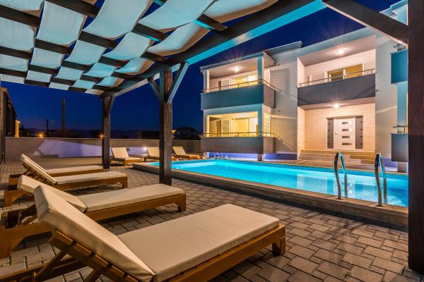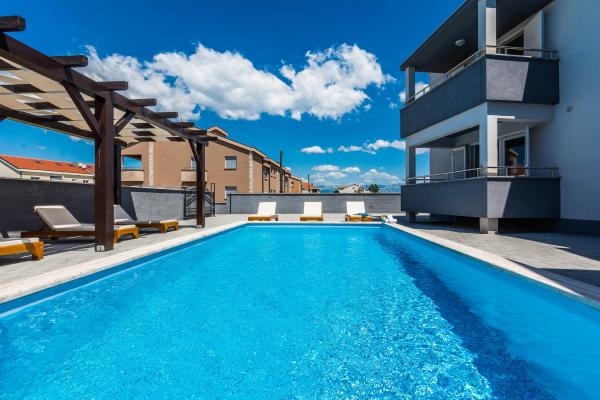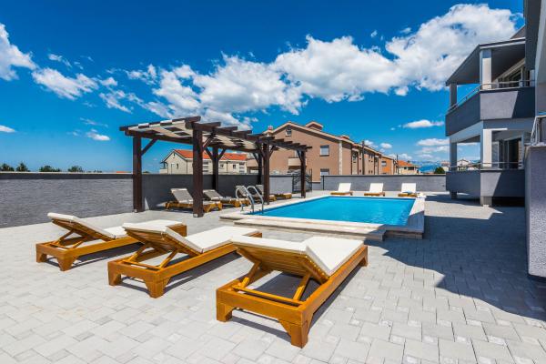 Villa More apartmanok - négy apartmannal (maximum 4 fő) és két szobával (mindegyik max. 2 fő) rendelkező ház Zatonban, a Zaton Turisztikai Központ közvetlen közelében. A Val szobához (földszint) nincs erkély, a Sunce szobához (1. emelet - erkéllyel) az erkélyre a folyosón keresztül lehet bejutni, nem közvetlenül a szobából. A létesítmény 5 perces sétára található a Zaton turisztikai üdülőhelytől és a strandtól. A Villa More medencével, jakuzzival és grillezővel ellátott kandallóval rendelkezik. Mosógép is rendelkezésre áll (közös használat). Ingyenes kerékpárokat és ingyenes parkolást is kínálunk a ház mellett.