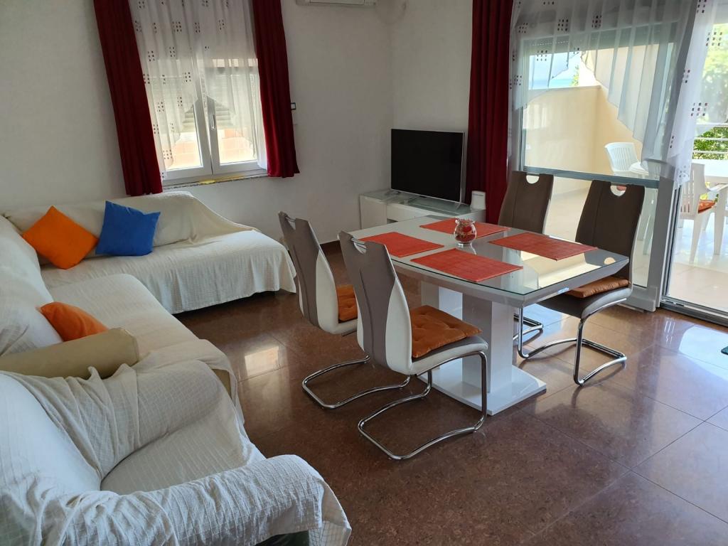 Gyönyörűen berendezett apartman, tágas, rendezett, tiszta, tökéletesen felszerelt konyha minden eszközzel, két hűtőszekrény fagyasztóval, szúnyoghálók az ablakokon és az erkélyajtókon, tágas terasz új bútorokkal és hintaággyal. Minden a leírás szerint van. A ház zöld környezete, napozóágyak a strandon, a strand közvetlenül a ház előtt van, a közelben homokos strand is található kisgyermekek számára, gyönyörű naplementék. Vendégszerető tulajdonosok. Zaton csendes környéke. Ajánlom!