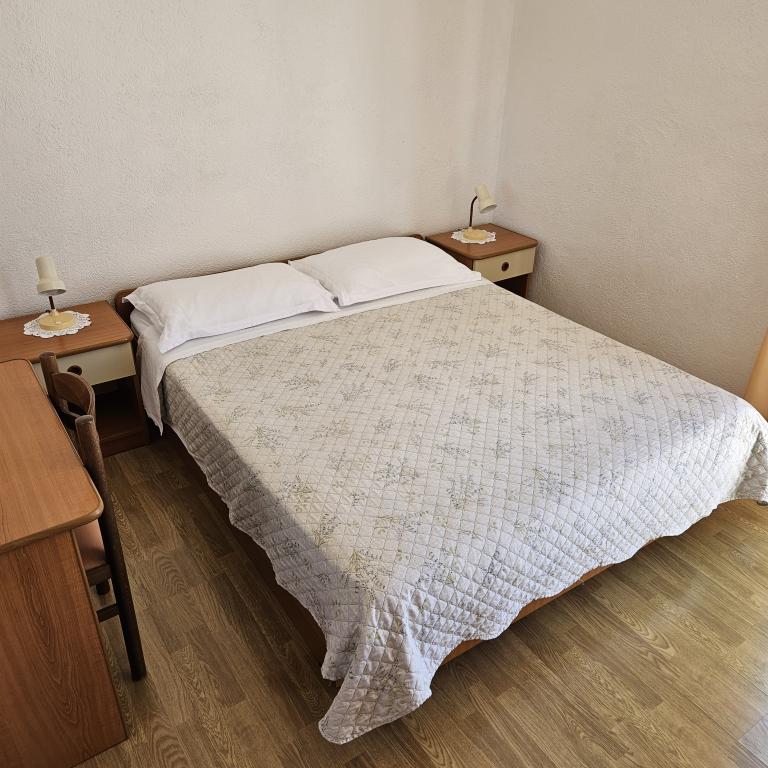 Kevesebb képek*A légkondicionálás opcionális és további 5 EURO/éj (A-8F apartman esetén 10 EURO/éj) felár ellenében - szállás az érkezés napján 12:00 órától és a távozás napján 9:00 óráig vehető igénybe. - Az A-3A, A-3B és A-3C apartmanok két felnőtt és egy gyermek elszállásolására alkalmasak, legfeljebb 12 éves korig. - Az A-4D, A-4E, A-4G és A-4H apartmanok két felnőtt és két legfeljebb 12 éves gyermek vagy 3 felnőtt elszállásolására alkalmasak. - Az A-8F apartman 6 felnőtt és két 12 éves korig gyermek vagy 7 felnőtt elszállásolására alkalmas. - Az A-6I és A-6J apartmanok 4 felnőtt és két 12 év alatti gyermek vagy 5 felnőtt elszállásolására alkalmasak. *Amennyiben a fentieknél többen tartózkodnak egy apartmanban a szállásadó jóváhagyásával, személyenként további 20 EURO/éjszaka kerül felszámításra.