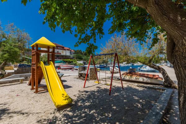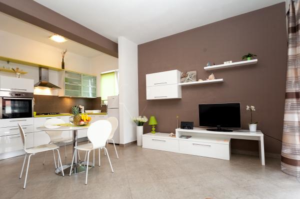 Tiszta és fényűzően berendezett apartmanok. Kellemes és segítőkész tulajdonosok. A strand 5 perc, alkalmas kisgyermekek számára, fokozatos belépés a vízbe, kavics. Határozottan ajánljuk.