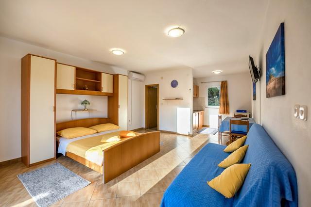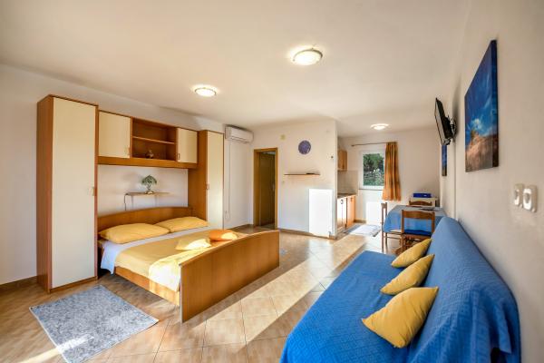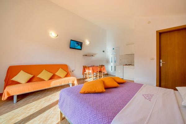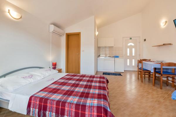 A Dugi otokon található Luka Slavica apartmanok új, modern berendezésű és tágas stúdióapartmanok (30-35m2 plusz erkély). 2-3 fő, vagy 2 fő részére 1-2 gyerek elszállásolására alkalmasak. Minden apartmanban van egy franciaágy és egy pótágy - egy 135x200 cm-es kanapé. . Csak 100 m-re a központtól, üzletek, kávézók, 150 m-re a legközelebbi strand. Béke, csend, kristálytiszta tenger, strandok az érintetlen természetben. KLÍMA: Légkondicionálás minden lakásban. INTERNET: Ingyenes WI-FI. Gépjármű bejutás a házhoz biztosított, a parkoló kb 150m-re található, ingyenes, nyilvános parkoló a parton, a kikötőben. Kutya nem megengedett.