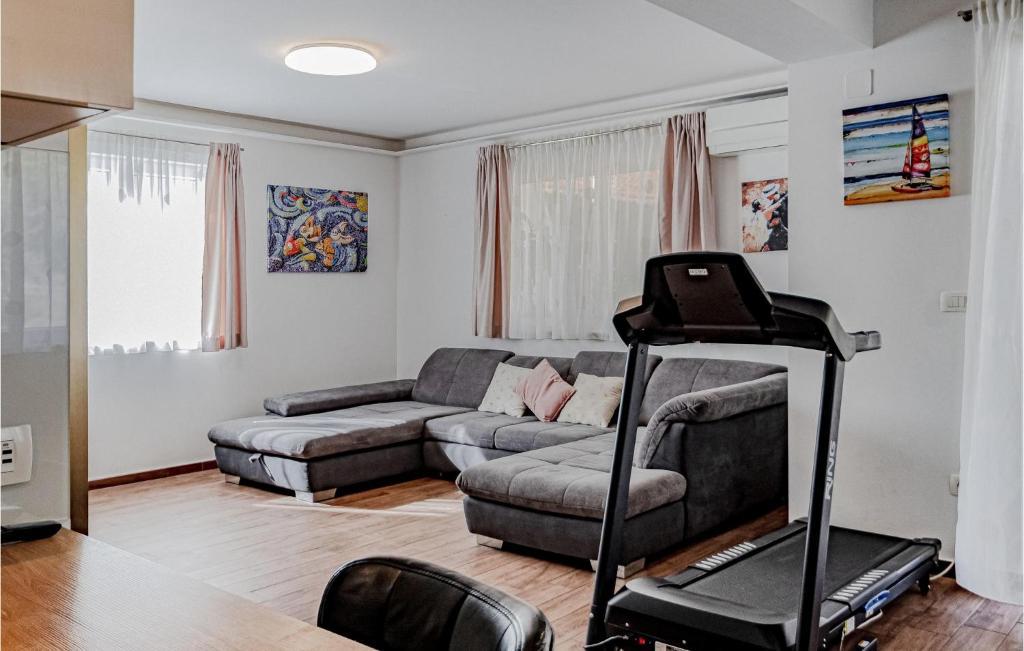 Tágas kert grillezővel. Az apartmanon belül kiváló minőségű Ring futópad áll a vendégek rendelkezésére.