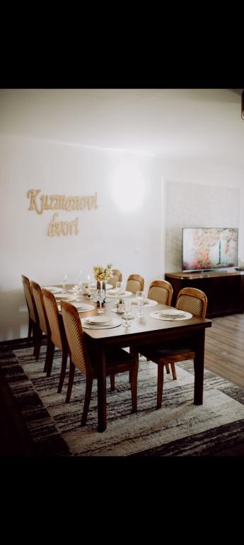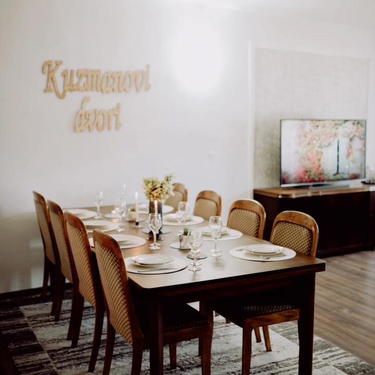Élvezze a száz éves szépséget, a "Kuzmanovi dvori" nyaralót. Ez a sokkoló villa teljesen kiállta az idő próbáját. Még mindig esetlenül áll, és kibontja rövid haját. A ház teljesen átalakított. Megőrizte eredeti külső megjelenését. A belső tér a modern ember igényeihez igazodik. Az udvarokon két hálószoba, egy nagy nappali étkezővel, konyha és fürdőszoba, valamint egy előszoba és egy nagy terasz található, ahonnan az eredeti építészetű, parkosított udvarra nyílik kilátás. A házat a családi örökségből származó eredeti bútorok és egyedi, masszív és kézzel készített elemek díszítik. A tágas nappali étkezővel lehetőséget ad a pihenésre egy nagy Android TV-vel. A tűz a kandallóban és a könyv a kezedben varázsa igazi vakációnak tűnik. Modern és funkcionális konyha (hűtő, fagyasztó, tűzhely, vízforraló, kávéfőző), tágas fürdőszoba káddal és mosógéppel. A házat korlátlan Wi-Fi hálózat fedi le, mindhárom tévén kábeltévé van. Jöjjön el hozzánk Štitarra, és tapasztalja meg Szlavóniát, Shockadiát teljes pompájában és minden kényelmében, amire a nyaralásához szüksége van.