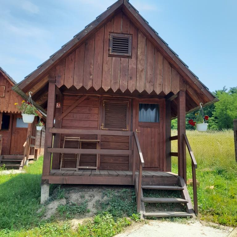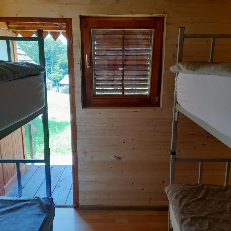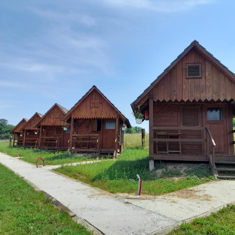 A házak természetes anyagokból - fából - készültek. Hagyományos módon épültek, méretük 4 x 3 m. A ház 5 felnőtt és két, legfeljebb 15 éves gyermek, vagy 3 felnőtt befogadására alkalmas. Minden házhoz terasz tartozik kilátással. A WC és a zuhanyzók a központi vizesblokkban találhatók, mindössze 20 méterre. Gyönyörű természetben, az adrenalinpark közvetlen közelében helyezkednek el.
