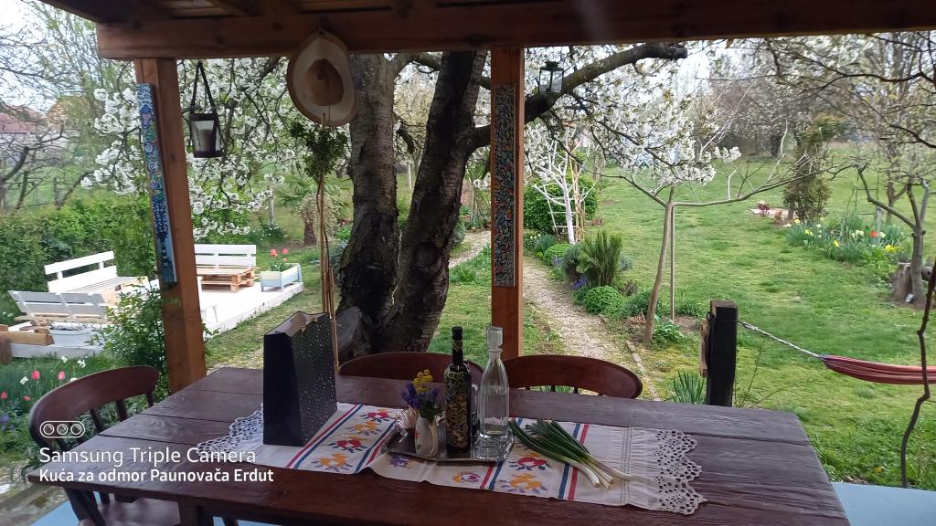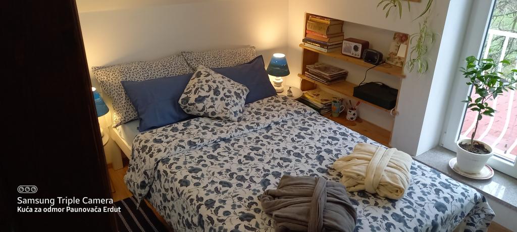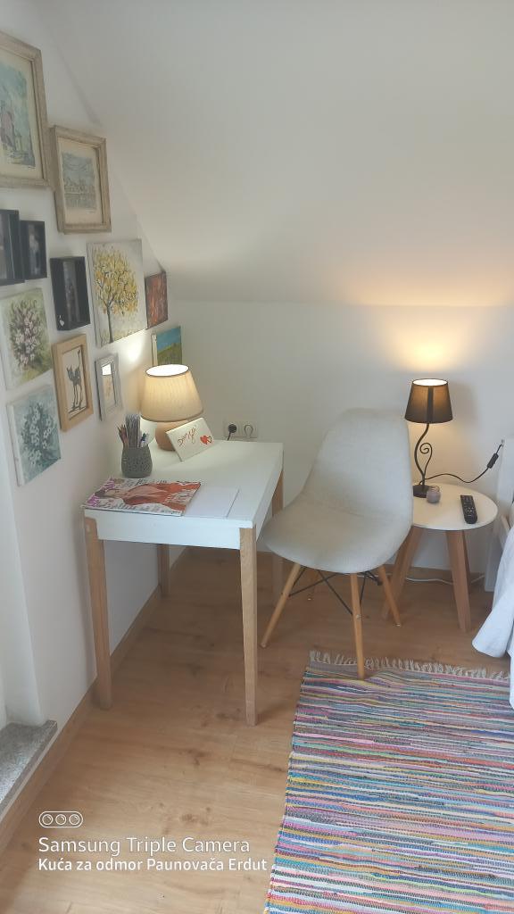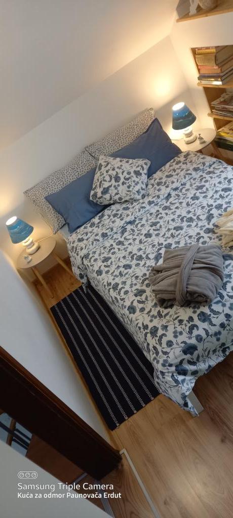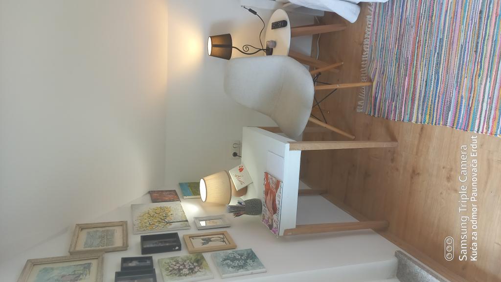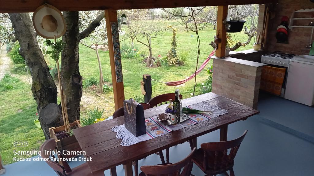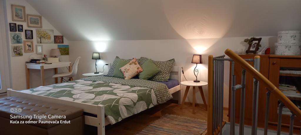 A Paunovača Erdut Erdut faluban található, a varázslatos zöld sétány fölött, a Duna zöld ösvénye fölött. Ez egy nyaraló, amely kényelmével, részleteivel, feltűnésmentességével megnyeri a tetszését és egy második otthon érzését kelti. A házban van egy hálószoba franciaággyal (nyílt koncepció), egy kisebb ágy a második szobában és egy kanapé a nappaliban. A nappali folytatásában található egy étkező és egy felszerelt konyha (kivéve mosogatógép és mikrohullámú sütő) Ingyenes meleg italok, többféle kávé és tea áll a vendégek rendelkezésére. A tágas udvaron fedett terasz kerti grillsütővel és kert az év melegebb részében biotermesztésű zöldségekkel és gyümölcsökkel. Ingyenes parkolás és WIFI áll a vendégek rendelkezésére. A ház ideális helyen található a természetben aktív pihenés szerelmeseinek, a Duna ereszkedés, túraútvonalak, egészséglépcsők közvetlen közelében, Erduton az Öregtorony közelében található. Üdvözöljük!