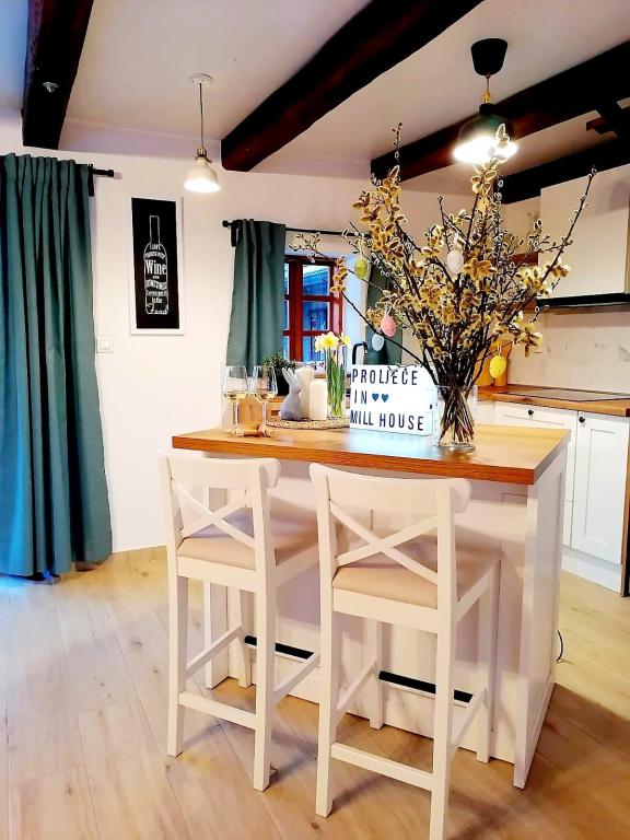 Üdülőház "U Mlinu" - A Millhouse-ban egy órás autóútra található Zágrábtól, Kutina, Lipik, Daruvar és Novska városok közelében. Az első település 5 perc sétával elérhető. Az ingatlan, amelyen a ház található, nagy és tágas. Az udvaron egy tó, egy kis híd, egy fűrészmalom és egy malom található, amelyek hagyományt adnak az egész helyszínnek, bár mind a külső, mind a belső terek díszítése a modern és a hagyományos ötvözete. A nyaraló közvetlen közelében van a Pakra folyó - kb 30 méterre a háztól. A belső kialakítás meleg, vidám és kellemes hely a barátokkal való együttléthez vagy családi összejövetelekhez. A ház fel van szerelve a szükséges háztartási gépekkel, a fürdőszobában is megtalálhatóak az alapvető szükségletek (papír, törölköző, hajszárító). A szobákban ágynemű, takaró és ruhatároló hely is található.