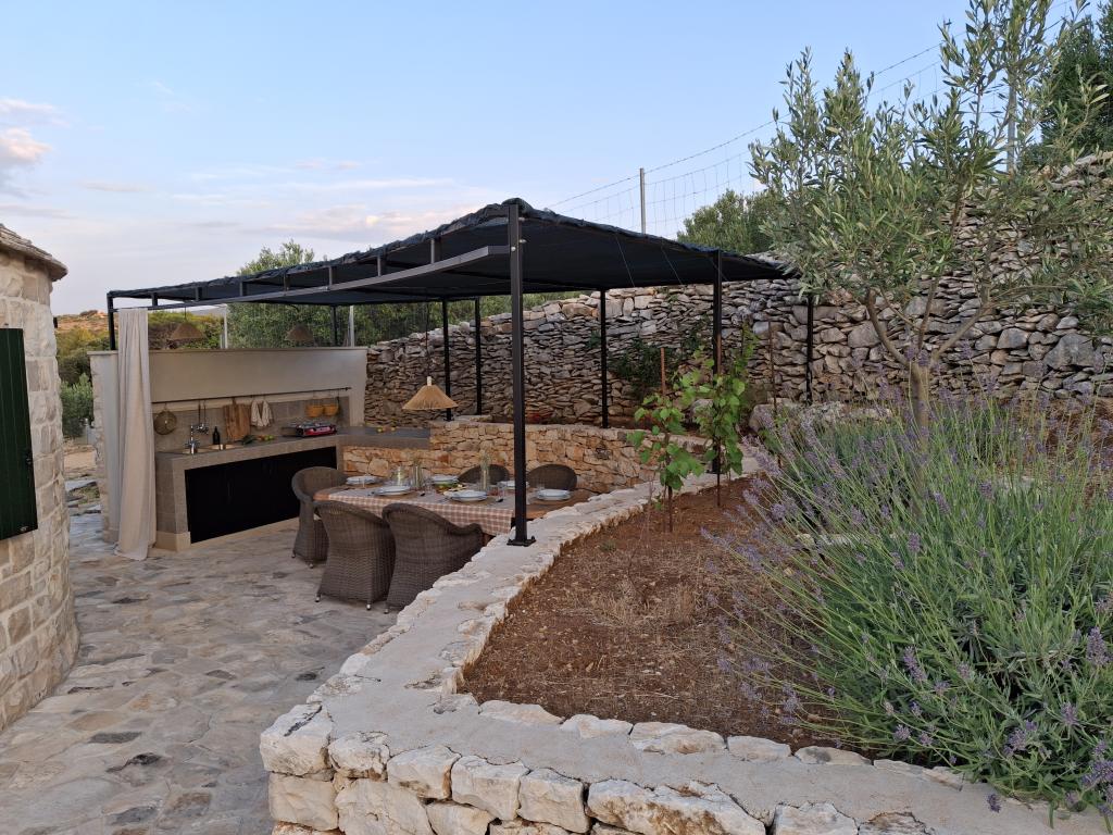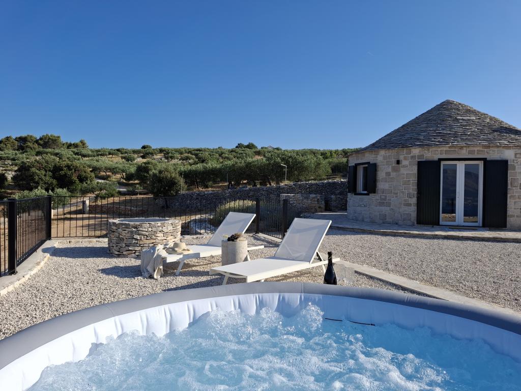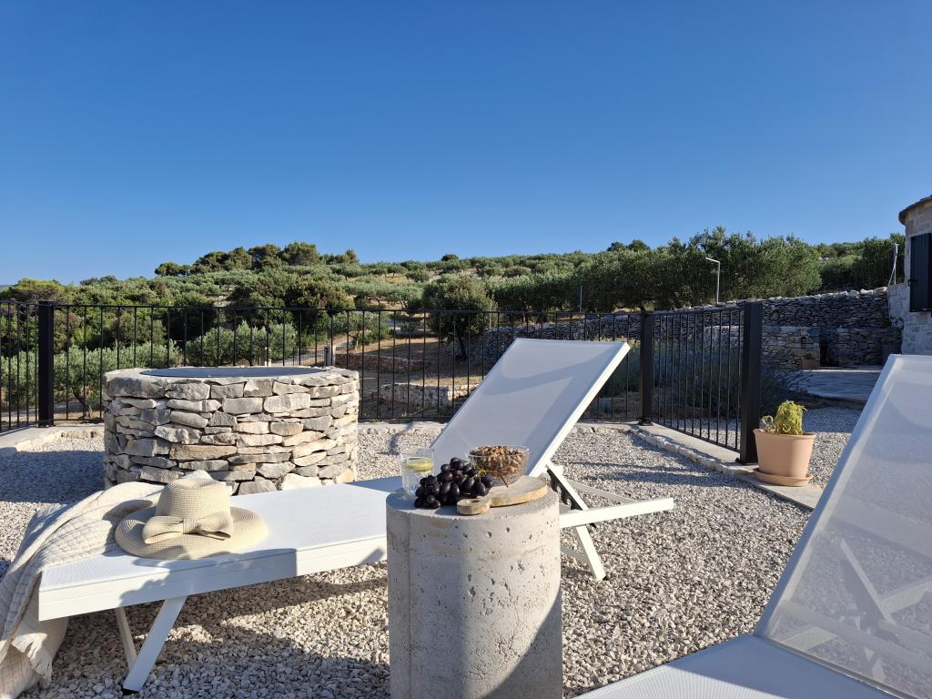 Minden vendégünknek ingyenes kóstolót és fogyasztást kínálunk a családi gazdaságban termelt házi olívaolajunkból. Amikor lehetőségünk van rá, más termékeket is kínálunk - mandulát és fügét -, hogy megtapasztalhassa a sziget igazi ízeit. Nem csak szállást kínálunk, hanem lehetőséget arra is, hogy Brač szigetét különleges módon fedezze fel: pihenjen egy pezsgőfürdőben kilátással, sétáljon olajfaligeteken és gyümölcsösökön keresztül, élvezze a helyi termékeket, hallgatson történeteket a sziget hagyományairól és életmódjáról. Kerékpárosok és az aktív pihenést kedvelők számára is alkalmas. Megjegyzés: a masszázskád (jacuzzi) használata május 1. és szeptember 30. között lehetséges.