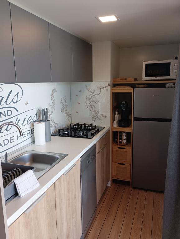 LADO - egy darab paradicsom egy kis mobilházban, ahol örökké szeretne maradni. Úgy van kialakítva, hogy minden igényét kielégítse álmai tökéletes nyaralásához, legyen szó főzésről a teljesen felszerelt konyhában, vagy csak pihenjen a tágas teraszon, amelyet háromszáz éves olajfák vesznek körül. Hagyja, hogy a levendula és a rozmaring illata frissen grillezett barbecue-vel keverve a hedonista nyugalom magasabb szintjére vigye. A LADO mobilház az észak-dalmát tengerparton, Drage városában, Pakoštane városában található, félúton Zadar és Šibenik között. Az ingatlan közelében 3 nemzeti park található: Paklenica, Krka és Kornati Nemzeti Park. 2 natúrpark is található: a Vrana-tó és a Telaščica. Tökéletes hely azoknak, akik nyugalmat keresnek, de valami látnivalót és élményt is. Forduljon hozzánk bizalommal.