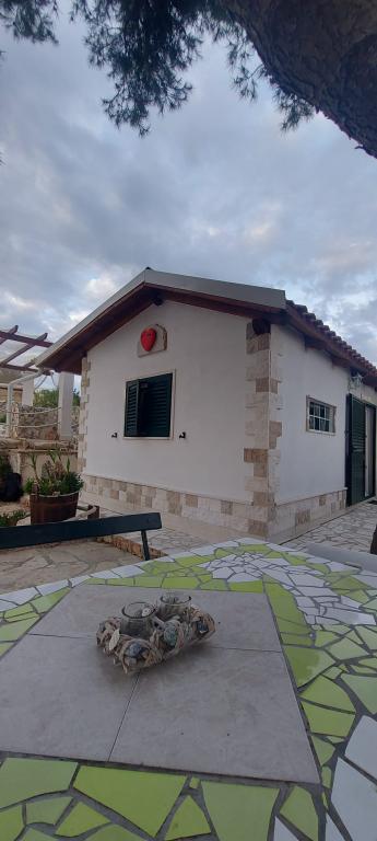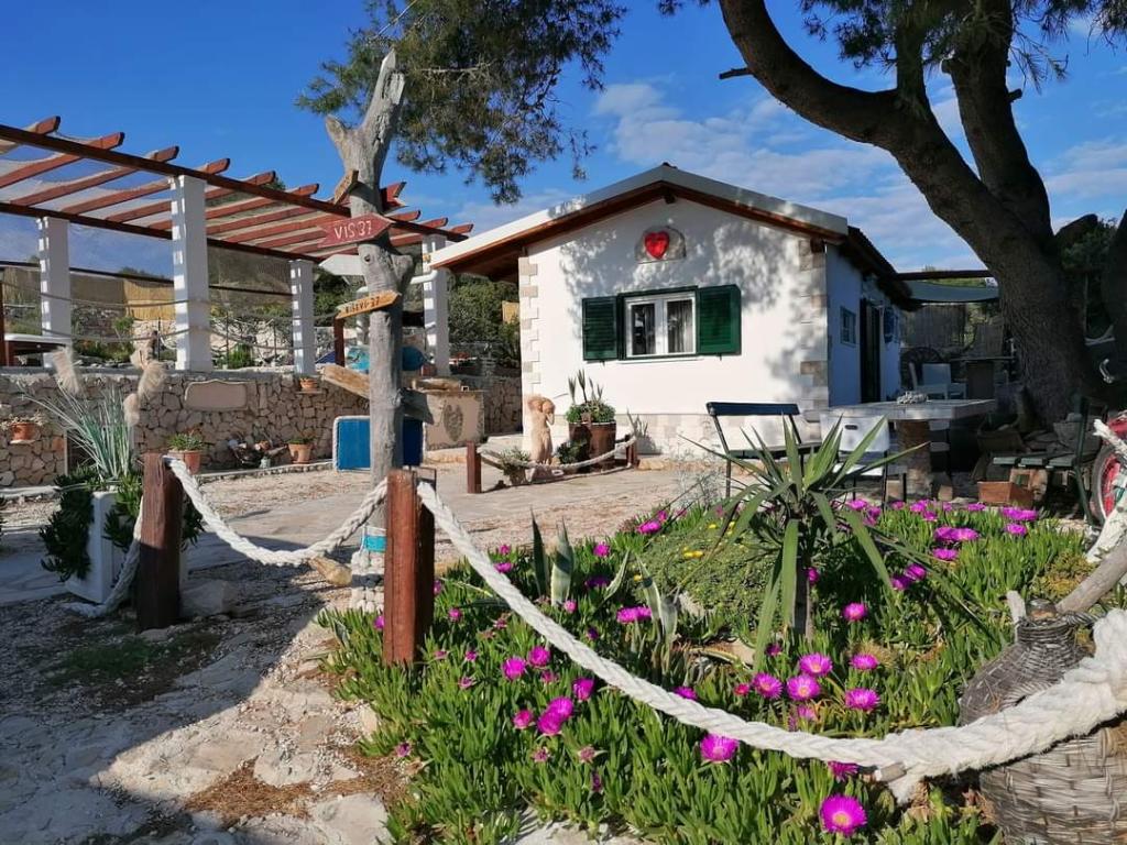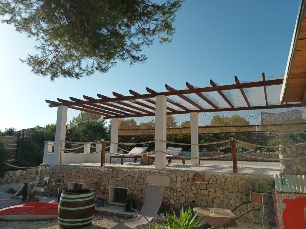 Drvenik Mali egy Trogir városától kb. 8 tengeri mérföldre található sziget, amellyel kompjárat köti össze (az út kb. 1 órát vesz igénybe, és napi három, azaz négy vonal van). Ez egy tipikus halászfalu, távol a mozgalmas és stresszes életmódtól, így ideális az egyedülálló természet és a kristálytiszta tenger élvezetéhez. A létesítmény a sziget déli oldalán található, gyönyörű kilátással a nyílt tengerre, két részből áll. ház, melyben konyha, hálószoba és wc található (van egy kültéri zuhanyzó is, amiben a nap melegített vizet használnak), valamint egy félszuterénes épület, amelyben a hálószoba található. A napelemes rendszer elektromos áramát használja, a víz pedig esővíz. A konyhában gáztűzhely és hűtőszekrény fagyasztóval felszerelt. Ezen kívül TV-vel és Internet hozzáféréssel rendelkezik. A közvetlen közelben található a Vela Rina öböl csodálatos homokos stranddal.