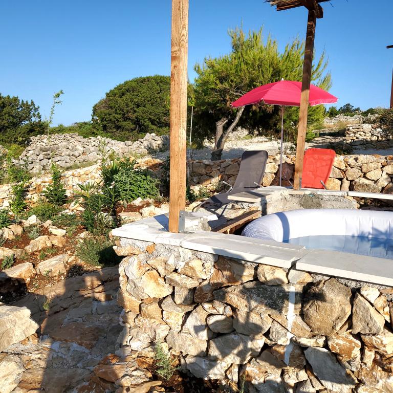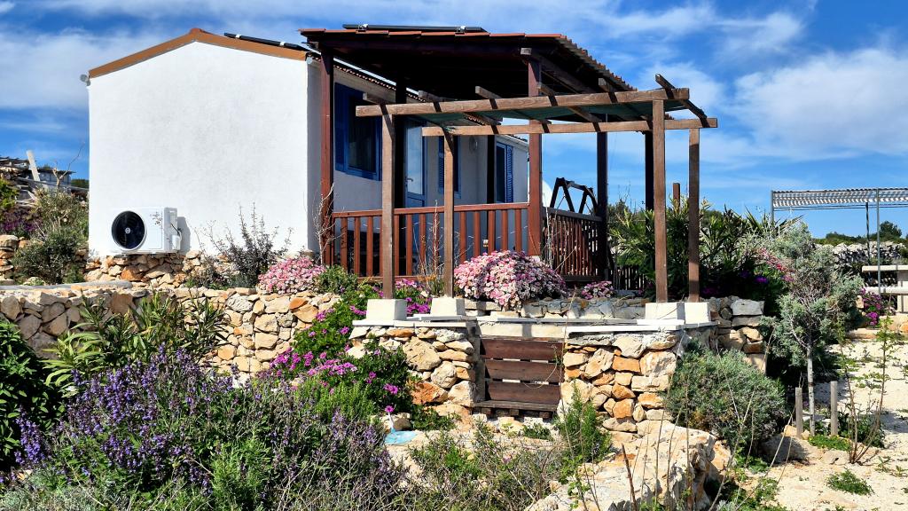 Tenger és napsütés az Adrián bárhol megtalálható, de ha igazán a város zaja és a járókelők nélkül szeretne pihenni, a legszebb napfelkelték és naplementék jegyében, akkor ez a Trogir közelében található sziget ideális az Ön számára. A napenergiával működő nyaraló mindössze 30 méterre található a tengertől, és a tenger mellett a hullámok évezredes játéka által formált természetes sziklákra is kilátás nyílik. Ez a most felújított, egykor mobilház mindenkinek szól, aki szereti a természet szépségét, a sok illatos zöldet, és egy kis nyugalomra vágyik, és ha szüksége van rá, a Wi-Fi is benne van az ajánlatban. Háziállatát is magával hozhatja nyaralni, a grillezés szerelmeseinek pedig egy nagy kültéri kandalló áll rendelkezésére. A ház légkondicionált, és egy teljesen felszerelt konyhából, két hálószobából és egy fürdőszobából áll. A ház előtt egy fedett terasz található asztallal, székekkel, nyugágyakkal és kültéri zuhanyzóval. Ezért, ha egy olyan helyre szeretne jönni, ahol lassan telik az idő, és ha vágyik az érintetlen természetre - jöjjön el hozzánk.
