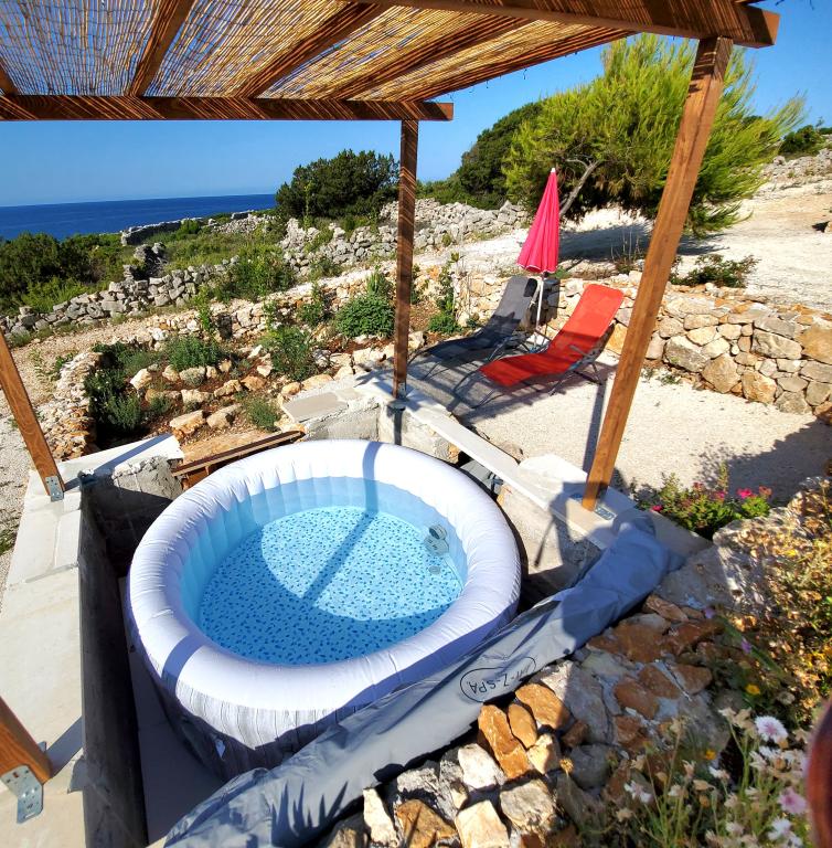Lakossági adót az az ár tartalmazza. Foglalási visszaigazolás dokumentum foglalás eseténA telken található egy 6 fő befogadására alkalmas Kis Kék Ház, amely együtt bérelhető. További információkat erről a szálláshelyről itt talál: https://www.apartmanija.hr/robinzonski-turizam/drvenik-mali/pregled-oglasa/355. Az ár tartalmazza a jakuzzi, kajakok, SUP és szükség esetén a gyermekmedence használatát.