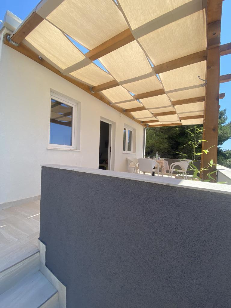 Modern és teljesen felszerelt ház magán a puntán, Mali Drvenik déli oldalán, mindössze 10 percnyi autóútra a Borak kompkikötőtől. Borakban van egy szupermarket alapvető élelmiszerekkel, egy klinika és egy kompjegy vásárlási hely. A ház közvetlenül a tenger mellett található, kb 30 m-re a tengertől, az ún "ploči", egy kavicsos érintetlen természetes strand kristálytiszta tengerrel. Napelemekkel van felszerelve, a víz pedig erdei esővíz, így nem iható. Néhány percnyi kellemes séta (kb. 700 m) található a szigeten egyedülálló homokos strand - Vela Rina helyi kávézóval és étteremmel.