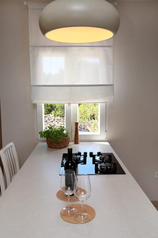 Lakossági adót az az ár tartalmazza. Foglalási visszaigazolás dokumentum foglalás eseténA Russo 2 egy nagyon kényelmes és igényesen berendezett ház a természetben, egy nagy, napos és panorámás terasszal, lenyűgöző napfelkeltével, ami miatt alig várjuk a kora reggeleket. Néhány tucat méterrel lejjebb egy csendes, privát sziklás strand található, kényelmes vízparti bejárattal, az öböl biztonságos és pont megfelelő méretű az úszáshoz és a szörfözéshez. Sétálni lehet a part mentén vagy a festői magaslati ösvényeken, Vela Rina hosszú, kék homokos strandja, amely reggelente és esténként békés, 10 perces kellemes sétával elérhető olajfaligetek mellett és egy érdekes régi falun keresztül. Szeptemberi szigeti tartózkodásunk nagyon békés és felfedezésekkel teli volt, a ház hangulatos, kiválóan és átgondoltan berendezett, nagyon tiszta és rendezett, de otthonos. Egy további kültéri zuhanyzó, olajfával borítva, tengerre néző kilátással, levendula és rozmaring illattal, a legszebb fürdőszoba, és természetesen a beltéri is kényelmes és gyönyörűen berendezett. A tulajdonosok, Snježana és Siniša rendkívül barátságosak, melegszívűek és vendégszeretőek, annak ellenére, hogy a tenger túloldalán élnek, mindig segítőkészek és tudják, hogyan kell meleg és barátságos meglepetéseket okozni. Ha szereti a békés és kényelmes nyaralást, a természetet, az akadálytalan tengeri kilátást és a kanyargós ösvényeket a mediterrán növényzet között, akkor nagyon ajánljuk. Drvenik Mali egy igazán kicsi, de nagyon bájos sziget, és a tengerre néző Russo 2 ház is bájos.