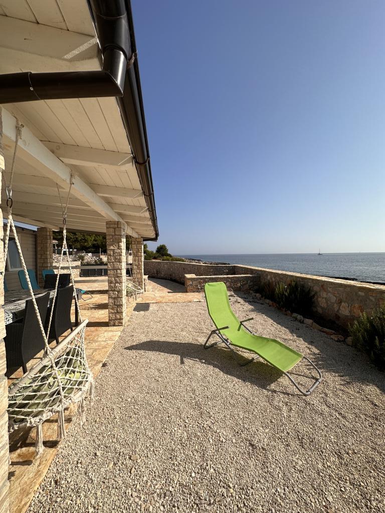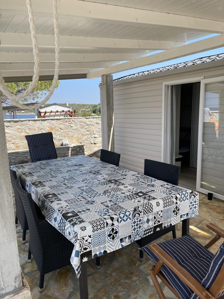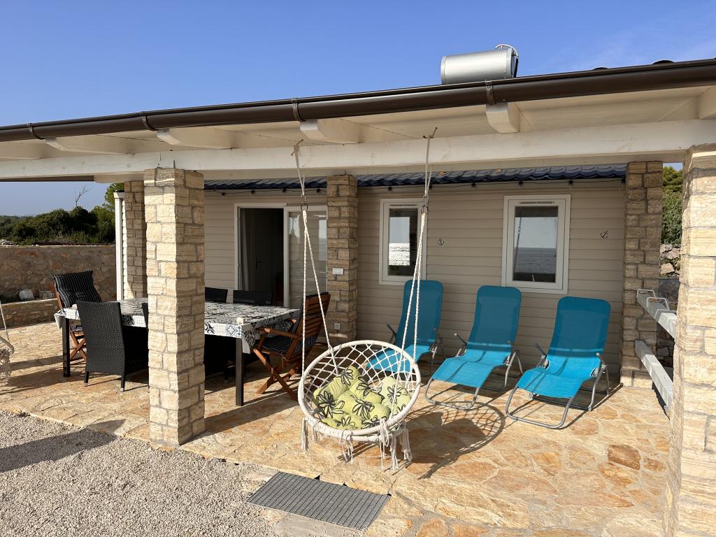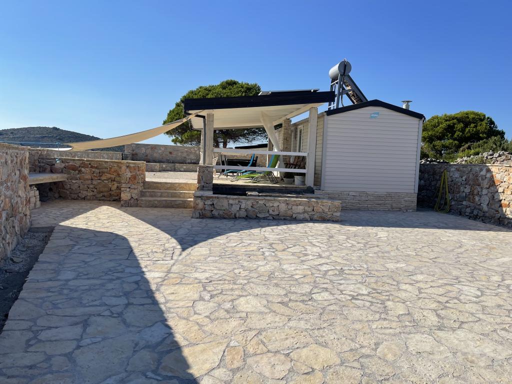 Korszerűen felszerelt mobilház minden szükséges felszereléssel, mindössze 10 méterre a tengertől. Tökéletes a nyugalom és a tengeri kilátás élvezetéhez. A tenger melletti tágas teraszon a mesebeli naplementék a béke igazi oázisa. A házban két kétágyas hálószoba, egy konyha étkezővel és egy kanapé, valamint egy tágas, teljesen felszerelt fürdőszoba található. A ház napelemekkel, klímával, mikrohullámú sütővel, hűtőszekrénnyel fagyasztóval, kültéri és beltéri zuhanyzóval, gázgrillel felszerelt. Folyóvíz a ciszternából. A vizet és az áramot takarékosan kell használni. A ház megközelíthető autóval és ingyenes parkolási lehetőség biztosított. Tágas, 200 m2-es kert, saját hozzáféréssel a tengerhez. A háztól 500 méterre található egy egyedülálló homokos Vela Rina strand, ahol egy strandbár és egy taverna található.