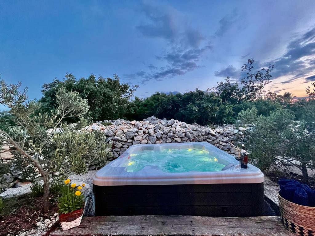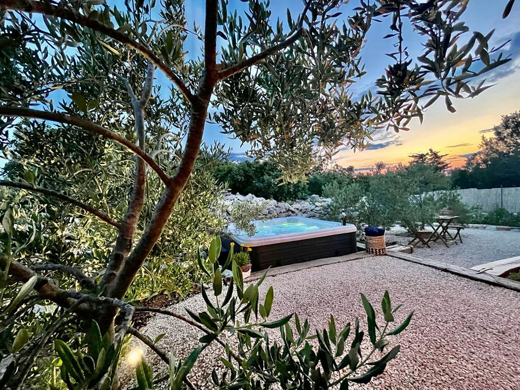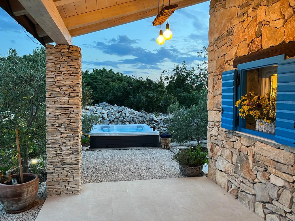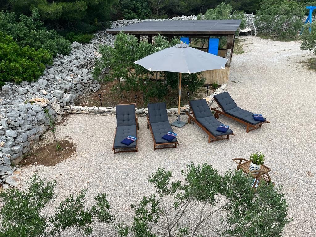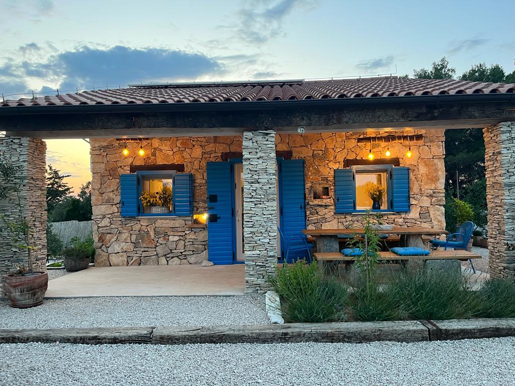 Luxus félreeső ház egy olajfaligetben, a tenger mellett. Felejthetetlen Robinson légkört biztosítunk magas színvonalú szállással. A telekre autóval lehet megérkezni. Több parkolóhely biztosított. Kínálatunkban van egy nagy jacuzzi, kültéri kerti bútor, napozóágyak, hinták, nagy kő grillsütő, kültéri zuhanyzó. A létesítmény teljesen felszerelt a kényelmes tartózkodás érdekében, konyha minden géppel (gáztűzhely, hűtőszekrény, fagyasztó, mosogatógép, kávéfőző, vízforraló...Wi-fi, internet, műholdas TV. A hely légkondicionált és központi fűtés, amely lehetővé teszi a téli időszakban is.