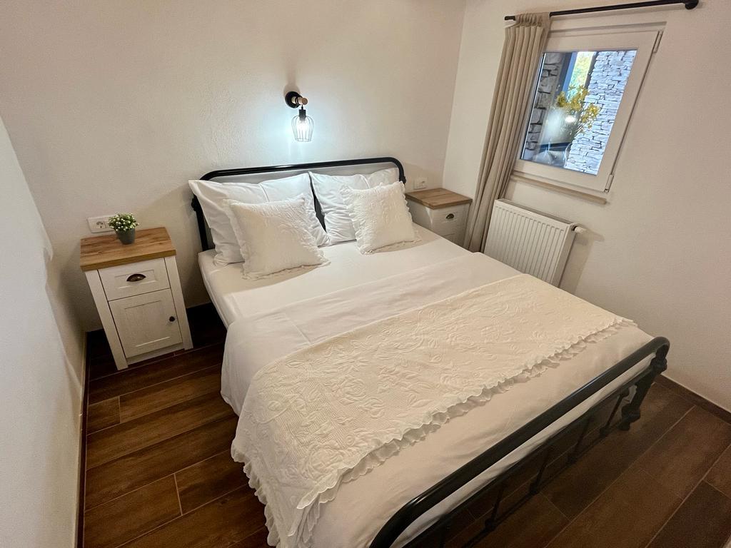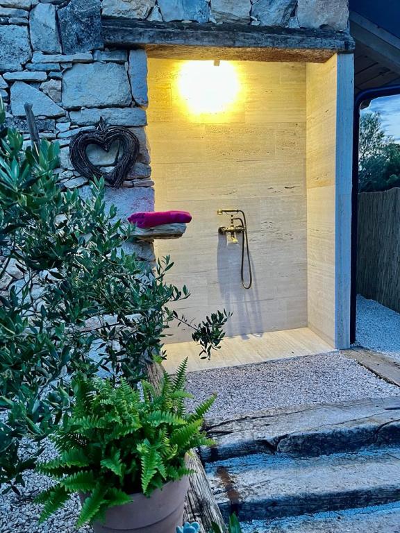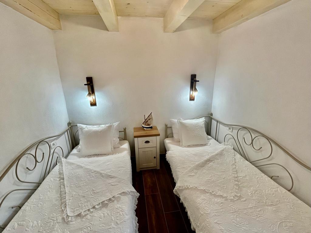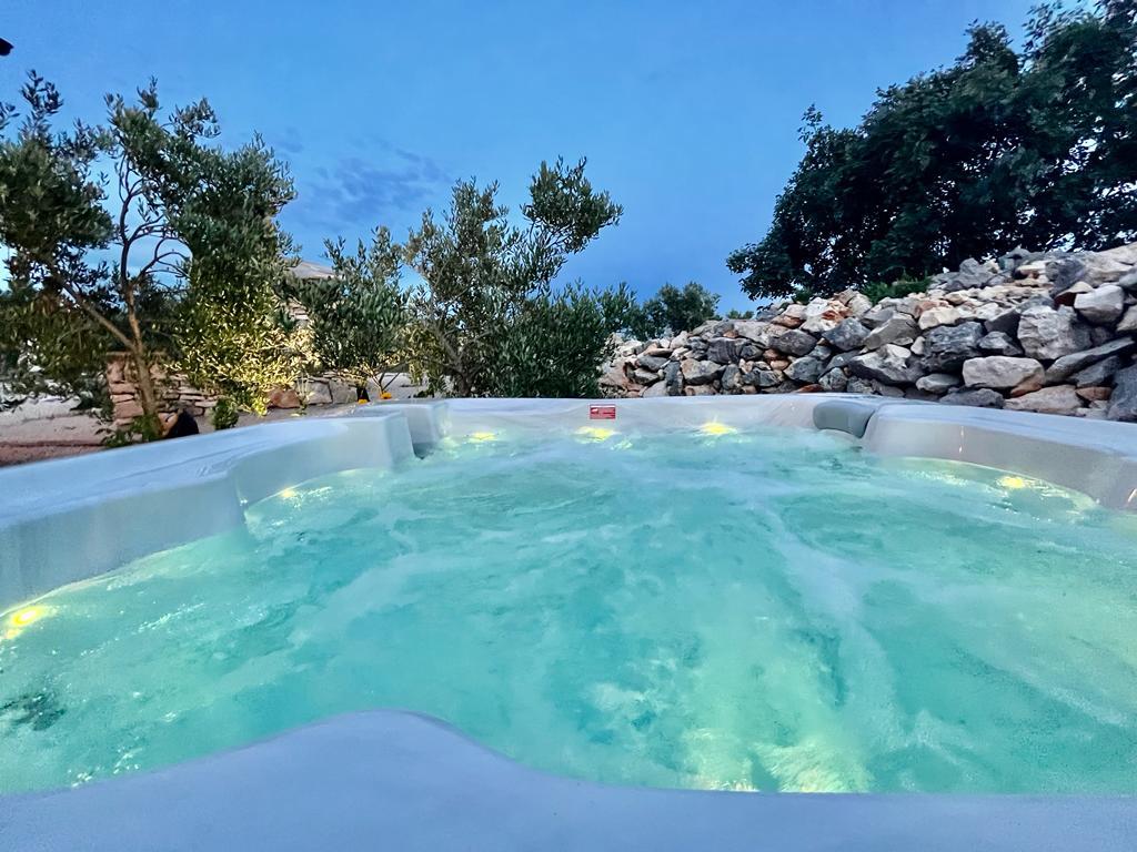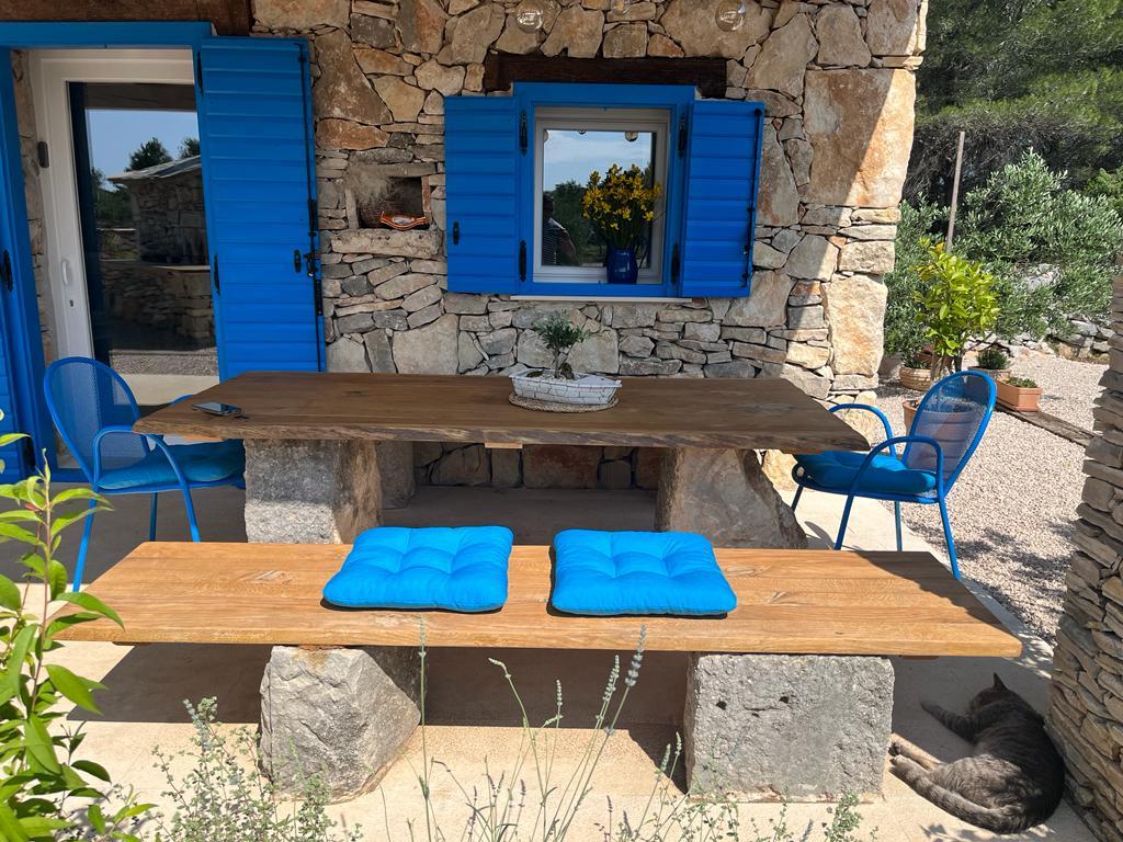 Luxus félreeső ház egy olajfaligetben, a tenger mellett. Felejthetetlen Robinson légkört biztosítunk magas színvonalú szállással. A telekre autóval lehet megérkezni. Több parkolóhely biztosított. Kínálatunkban van egy nagy jacuzzi, kültéri kerti bútor, napozóágyak, hinták, nagy kő grillsütő, kültéri zuhanyzó. A létesítmény teljesen felszerelt a kényelmes tartózkodás érdekében, konyha minden géppel (gáztűzhely, hűtőszekrény, fagyasztó, mosogatógép, kávéfőző, vízforraló...Wi-fi, internet, műholdas TV. A hely légkondicionált és központi fűtés, amely lehetővé teszi a téli időszakban is.