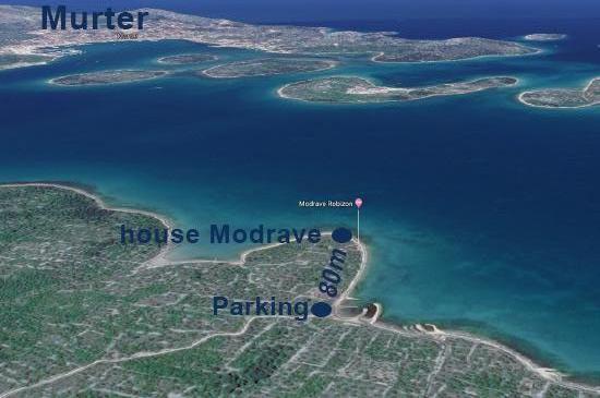 A létesítmény 10 percre található Murter központjától, és saját hajóhoz tartozik. Lehetőség van hajóra és autóval csak az autó vezetésével, ha egy makadám úton halad. A Murter biztonságos parkolását a vendégek ingyenesen biztosítják. Szintén biztosított az otthoni szállítás ingyenes. A ház a tengerparton található, 10 méterre a tengertől. Az objektum napenergiával 240V-os villamos energiával rendelkezik. A víz a tartályból származik, és racionálisan kell fogyasztani. A ház kerékpárosok számára alkalmas, mivel a kerékpáros útvonalak közelében található. A ház magányos és ideális pihenésre és békére.