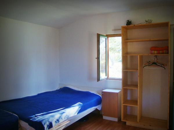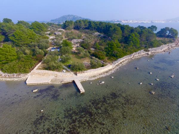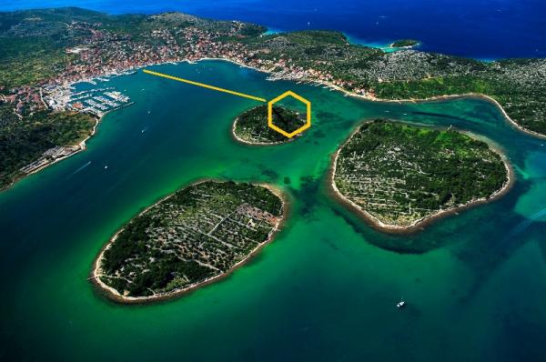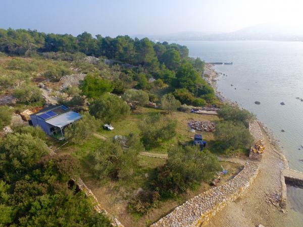 Eleged van a zsúfolt strandokból? Békét és természetet keresel? Valami mást keresel? Szinte privát szigetélményt kínálunk! Kis faház, két főnek vagy kisgyerekes párnak, nyári szünetre. Egy hely, ahol egy 800 m2-es olajfaligetben élvezheti a békét és a természetet, szinte egyedül a szigeten. A minimális tartózkodási idő 7 nap. A ház saját stranddal, konyhával, grillezővel és csónakkikötővel rendelkezik. A házban ivóvíz és villany (napelemes) van. Van egy WC. A zuhanyzó kint van. Murter városa a közelben található (300 méter), amely körülbelül 10 percnyi hajóútra van.