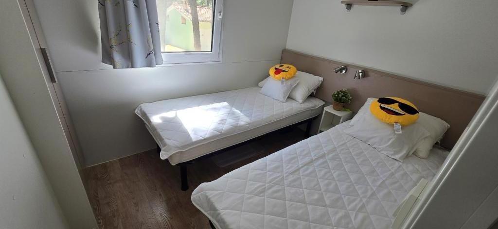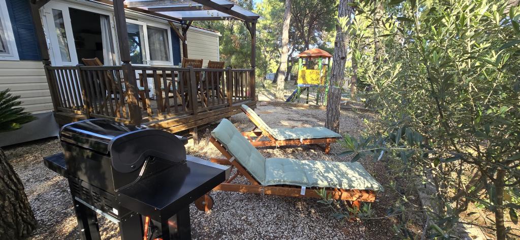 Itt a nyár, Foglalja le időpontját 2025-re Mobilház Vomer Tengerparti egység Teljesen felszerelt mobilház a Kozarice kempingben Pakoštane Strand 50 m Kellemes árnyék még a legerősebb napsütésben is. 4+1 fő 32 m2 + terasz 10 m2 1. hálószoba 1 franciaágy 2. hálószoba 2 egyszemélyes ágy Nappali (kanapéágy) 2 fürdőszoba kültéri zuhanyzóval, TV Ingyenes parkolás (közvetlenül a ház mellett) Ingyenes WiFi (A1 nagysebességű internet) Légkondicionáló Grillezési lehetőség Ágynemű, törölközők A konyhában indukciós főzőlap, hűtőszekrény fagyasztóval, mikrohullámú sütő, kenyérpirító, vízforraló, edények... A teraszon kényelmes nyugágyakban pihenhet. Van egy park a kempingben, a közelben pedig mosógép és szárítógép is található. Étterem és kávézó a kempingben, pár perc sétára. Közel a városhoz (3 perc séta), sétány, éttermek, kávézók, gyógyszertár, üzletek,