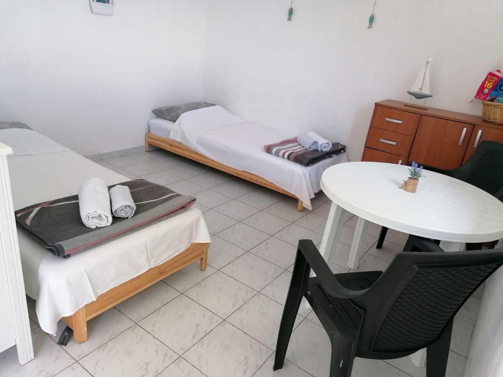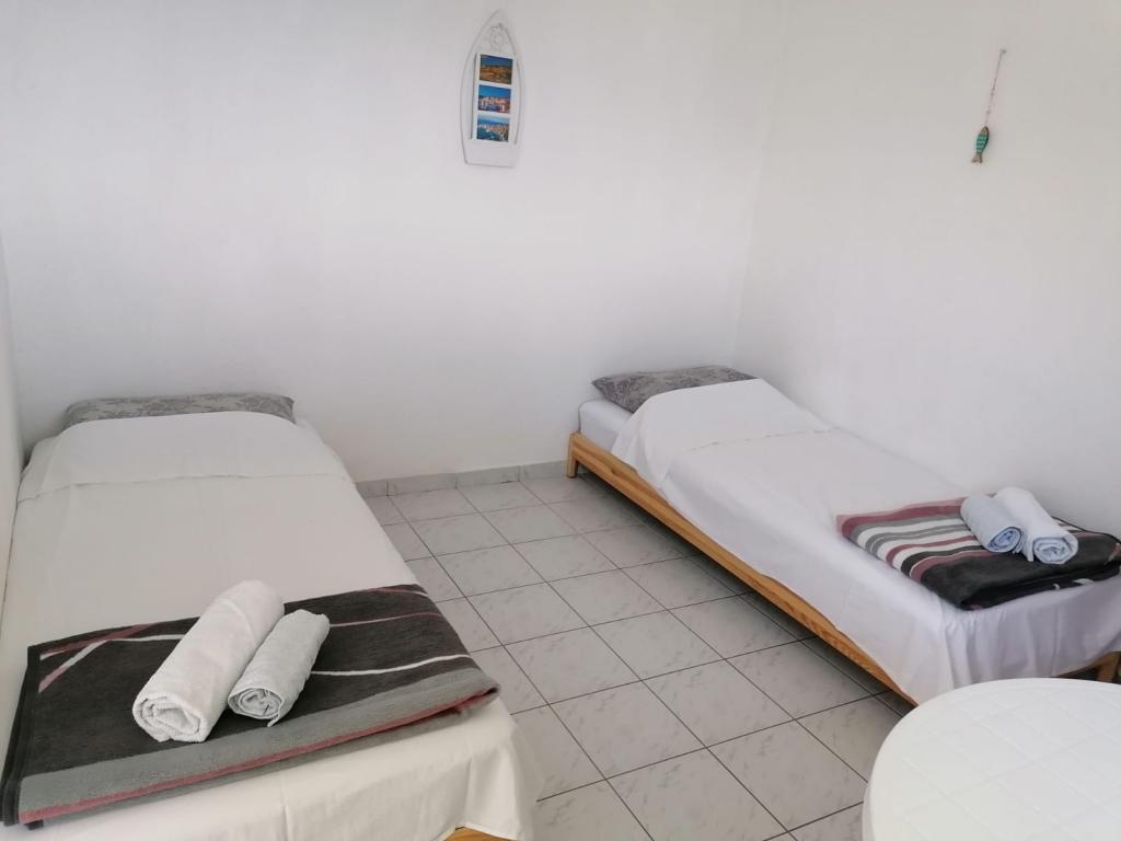 Elérhető időpontok: 2025. augusztus 16-23. és szeptember 11-től. A ház a Dučac-öbölben található, Postirától 6 km-re, Brač szigetén, és ideális a Robinson turizmus kedvelőinek, akik mindenekelőtt a természetet és a csendet értékelik. Az öbölben nincs vízellátás, de van egy tartályunk mosogatáshoz és kültéri zuhanyozáshoz, valamint napelemek, amelyek elegendőek a világításhoz és a mobiltelefonok töltéséhez. Az ivóvizet külön kell fizetni. Jó a telefontérerő. A házban 2 szoba található: az egyikben egy franciaágy, a másikban, a konyhasarokhoz csatlakozva, 2 egyszemélyes ágy található. Van egy pótágy is. A WC külön házban található (WC és öntözőkanna). A házban hűtőszekrény, gáztűzhely, az udvaron kandalló/grill, konyhai eszközök, evőeszközök és ágynemű található. Maga a ház autóval megközelíthető, az út kissé meredek, de újonnan aszfaltozott, kátyúk nélkül stb. Gyalogosan elérhető a közeli Lovrečine-öböl, amelyet az Adriai-tenger legszebb strandjának nyilvánítottak, és ahol étterem is található. Egy ösvény vezet a tenger mentén az öbölbe.