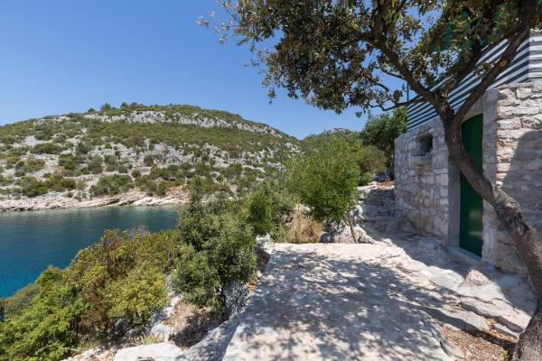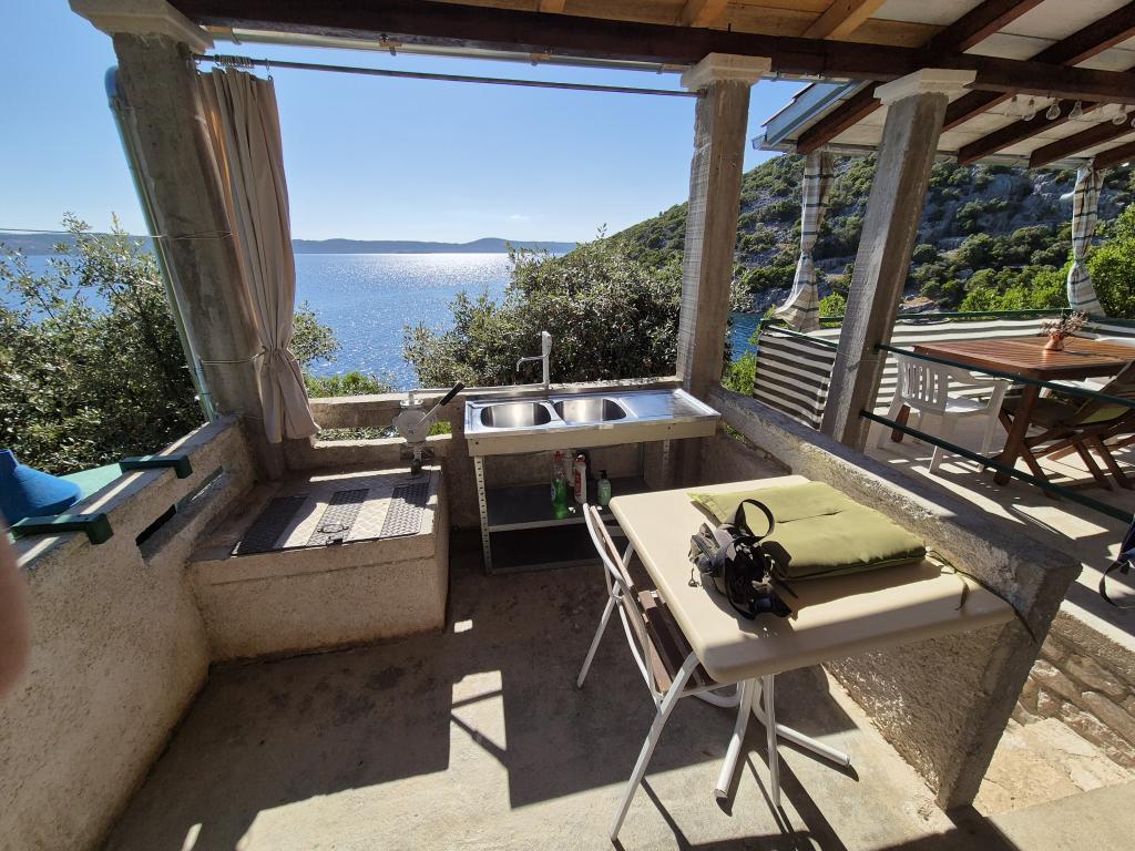 A létesítmény félreeső, gyönyörű kilátással. Az öböl védve van minden széltől. Ha hajóval jön, kiköthet az öbölben. Ha autóval érkezik, 10 percet vesz igénybe gyalogosan a létesítmény. A házhoz terasz, konyha, hálószoba, wc, zuhanyzó tartozik. Van benne ciszterna 9000 liter vízzel, napelem 220V a világításhoz, töltők mobiltelefonokhoz/laptopokhoz, szúnyoghálók. . stb. A hűtőszekrény 220V-ról működik, napelemes töltés. Van egy 90 literes 25 literes fagyasztó.