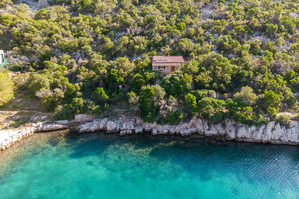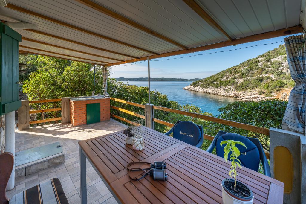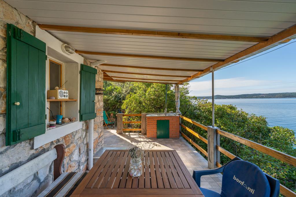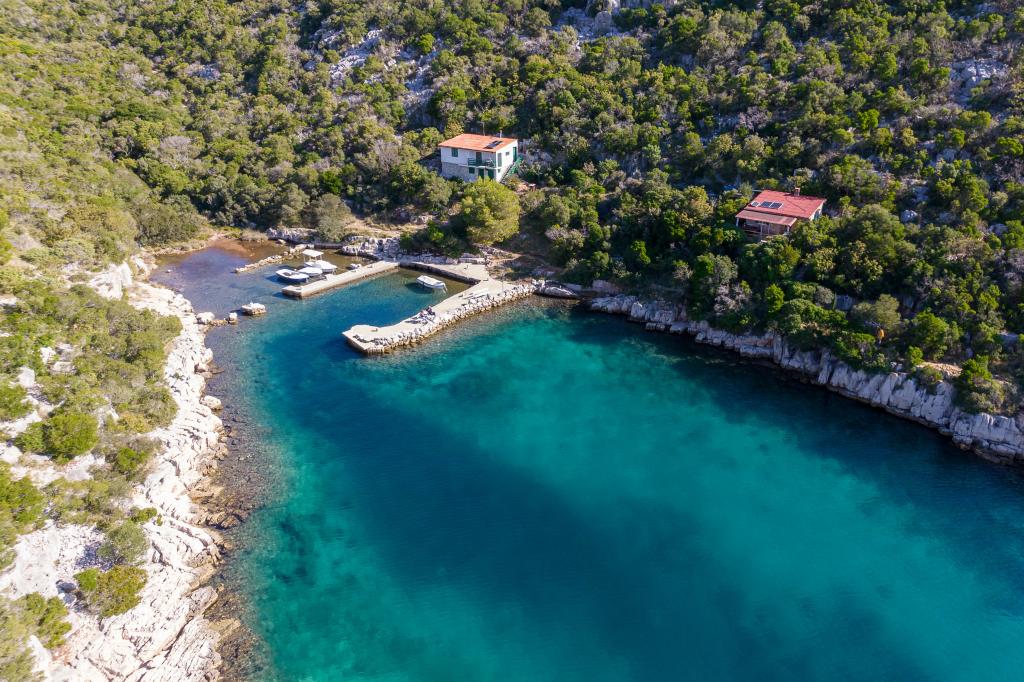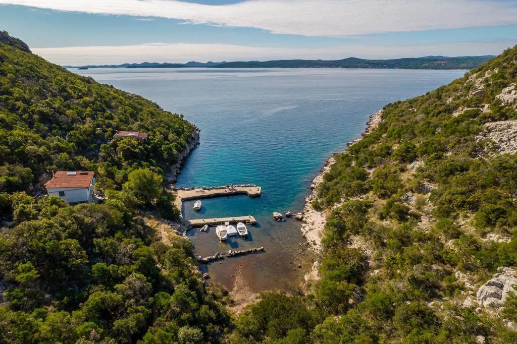 A ház Ugljan szigetén, egy kis védett öbölben található. Terasza délnyugatra és Iž szigetére néz. A házhoz egy út vezet, a fehér út végén leparkolod az autódat, majd még 10 percet gyalogolhatsz az ösvényen. A házban van víz és alternatív energiaforrás, azaz napelemes villany 12 V-on. Lehetőség kisfogyasztók, például mobiltelefonok, stb. töltésére. A ház ideális 2 fő elszállásolására. A ház elhelyezkedése olyan, hogy teljesen szabadon érezze magát a természetben, és élvezze a nyugodt nyaralást. Ha van csónakja vagy motorcsónakja, akkor kikötője is van, és tetszés szerint szervezheti meg tartózkodását.