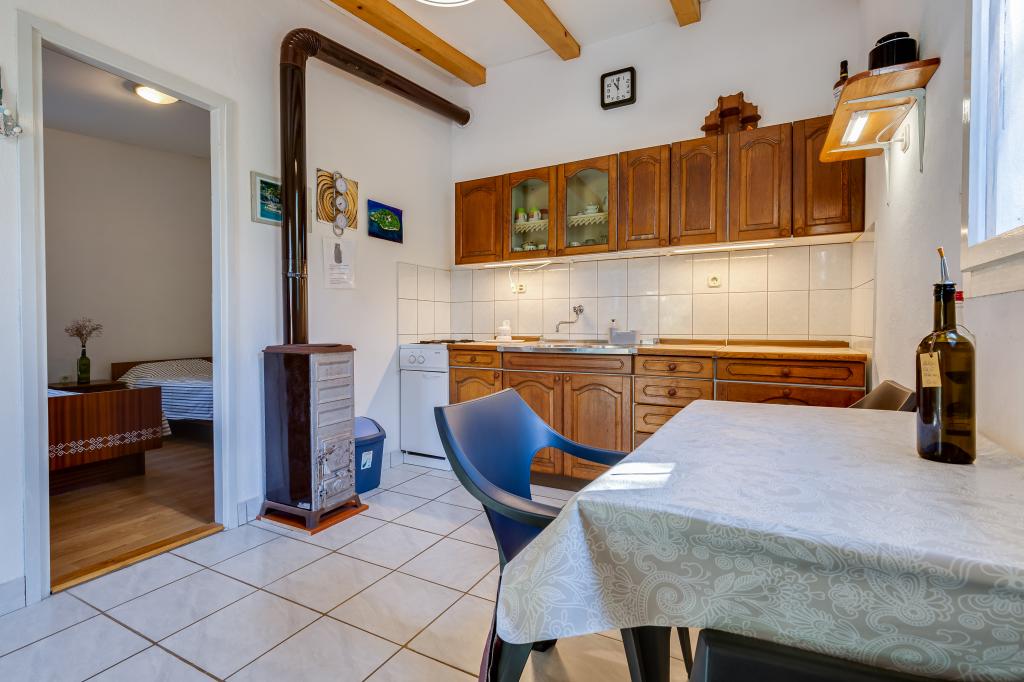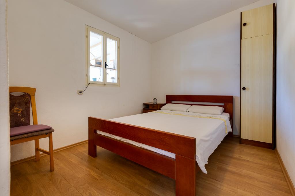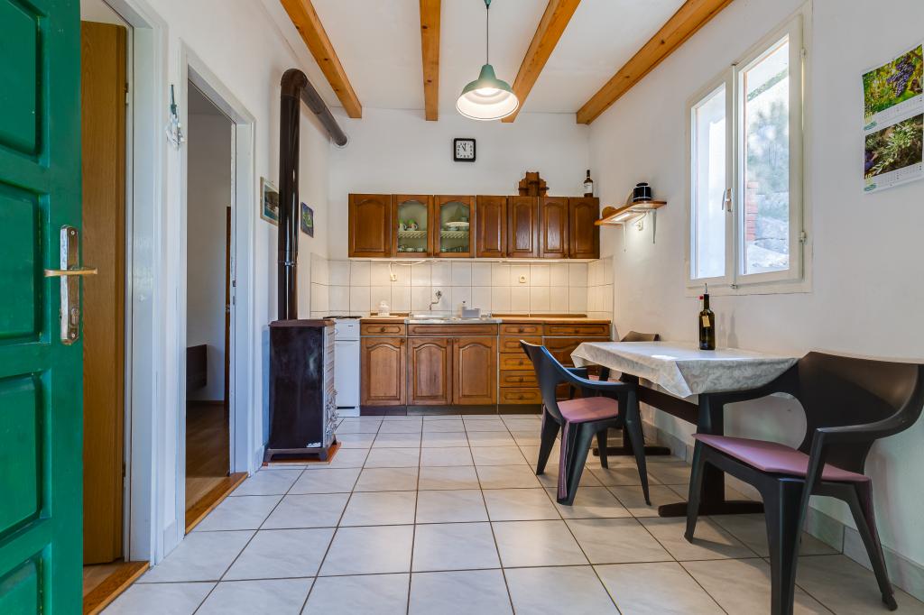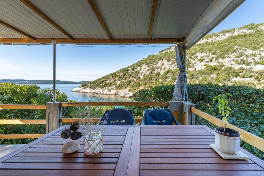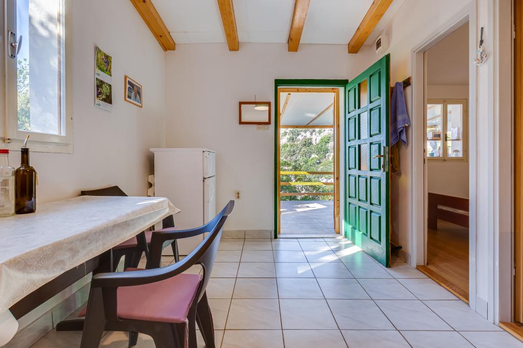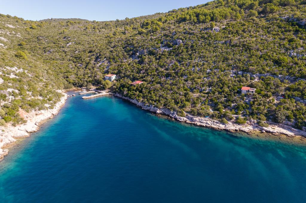 A ház Ugljan szigetén, egy kis védett öbölben található. Terasza délnyugatra és Iž szigetére néz. A házhoz egy út vezet, a fehér út végén leparkolod az autódat, majd még 10 percet gyalogolhatsz az ösvényen. A házban van víz és alternatív energiaforrás, azaz napelemes villany 12 V-on. Lehetőség kisfogyasztók, például mobiltelefonok, stb. töltésére. A ház ideális 2 fő elszállásolására. A ház elhelyezkedése olyan, hogy teljesen szabadon érezze magát a természetben, és élvezze a nyugodt nyaralást. Ha van csónakja vagy motorcsónakja, akkor kikötője is van, és tetszés szerint szervezheti meg tartózkodását.